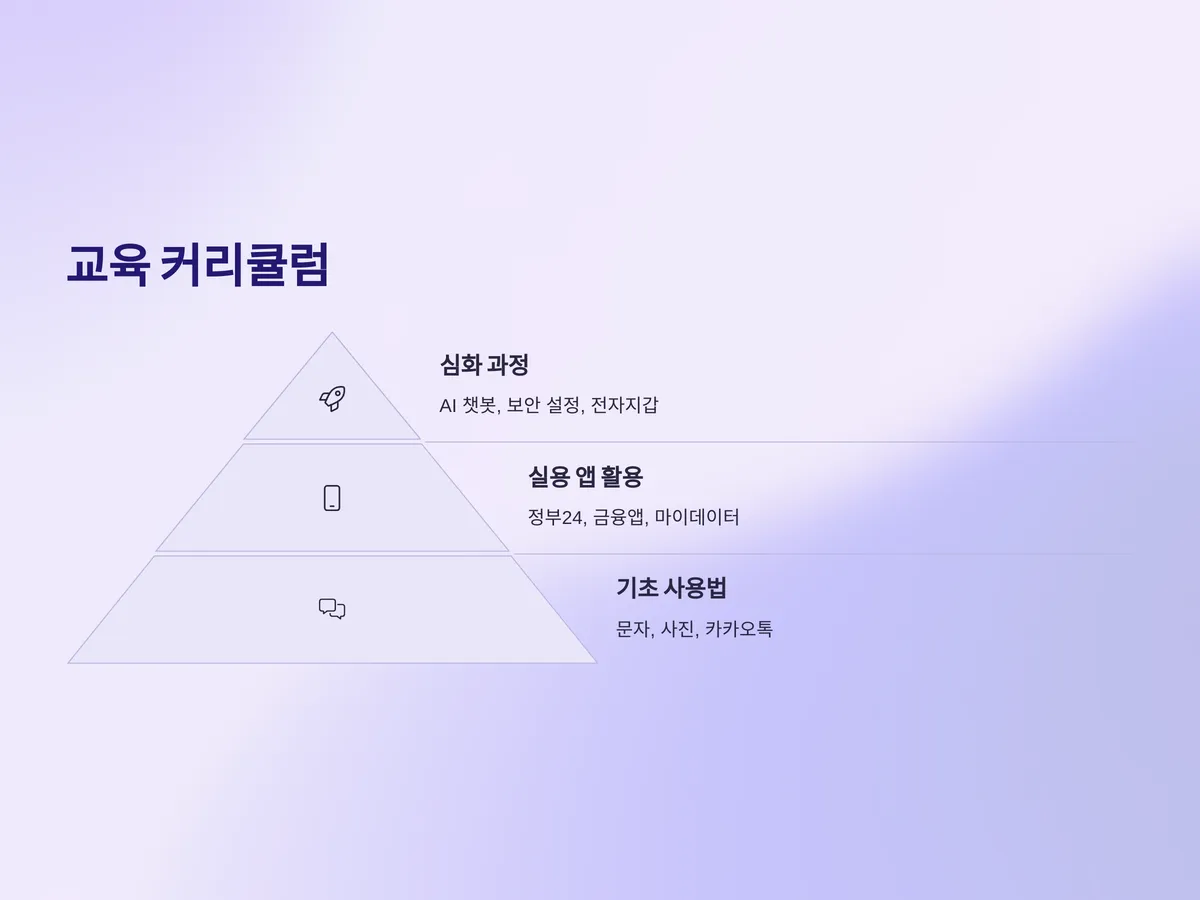 무료 스마트폰 교육의 커리큘럼은 생각보다 실용적입니다. 기초 사용법부터 시작해, 문자 보내기, 사진 찍기, 카카오톡 설치 및 사용법 등은 기본입니다. 여기서 나아가 정부24, 민원24, 모바일 운전면허증 발급, 금융서비스 이용 방법, 모바일 뱅킹, 공공 마이데이터 활용법까지 다양한 기능을 배우게 됩니다.