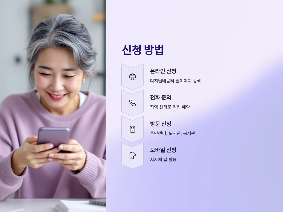 강좌 신청 방법은 매우 간단합니다. 가장 많이 활용되는 채널은 ‘디지털배움터’ 공식 홈페이지입니다. 홈페이지에서 원하는 지역과 강좌를 검색해 직접 신청할 수 있으며, 전화 문의를 통해 예약도 가능합니다. 또한 지역 주민센터나 도서관, 복지관 등에 직접 방문하여 신청할 수도 있어 디지털 접근이 어려운 이들도 쉽게 수강할 수 있도록 배려되어 있습니다.