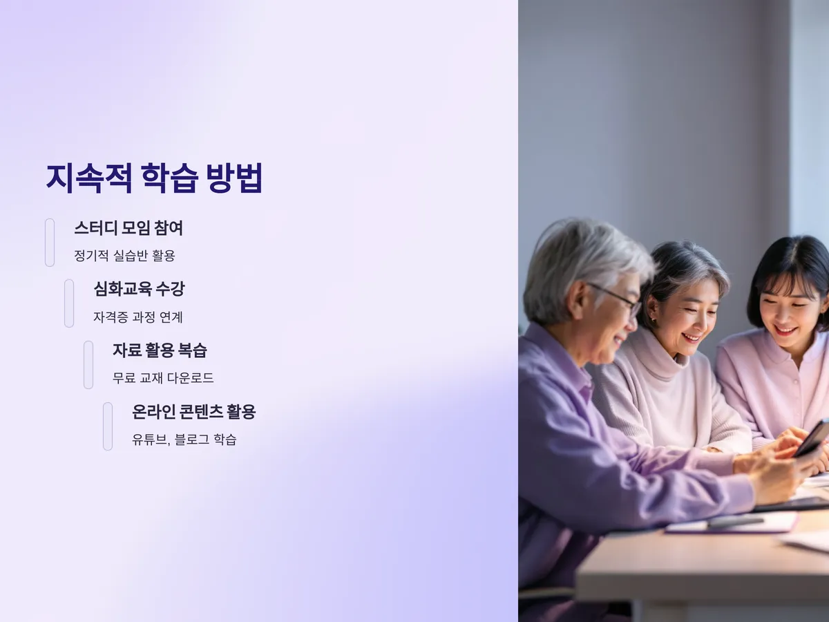 한 번의 교육으로 끝내기보다는, 이후에도 지속적으로 실습을 병행하고 반복학습을 통해 숙련도를 높이는 것이 중요합니다. 일부 지역에서는 정기적으로 스터디 모임이나 실습반을 운영하고 있어 이를 활용하면 좋습니다. 또한 지자체 또는 민간 교육센터와 협력하여 심화교육, 자격증 과정 등을 추가로 제공하기도 하므로 관심 있는 분들은 이어서 수강할 수 있습니다.