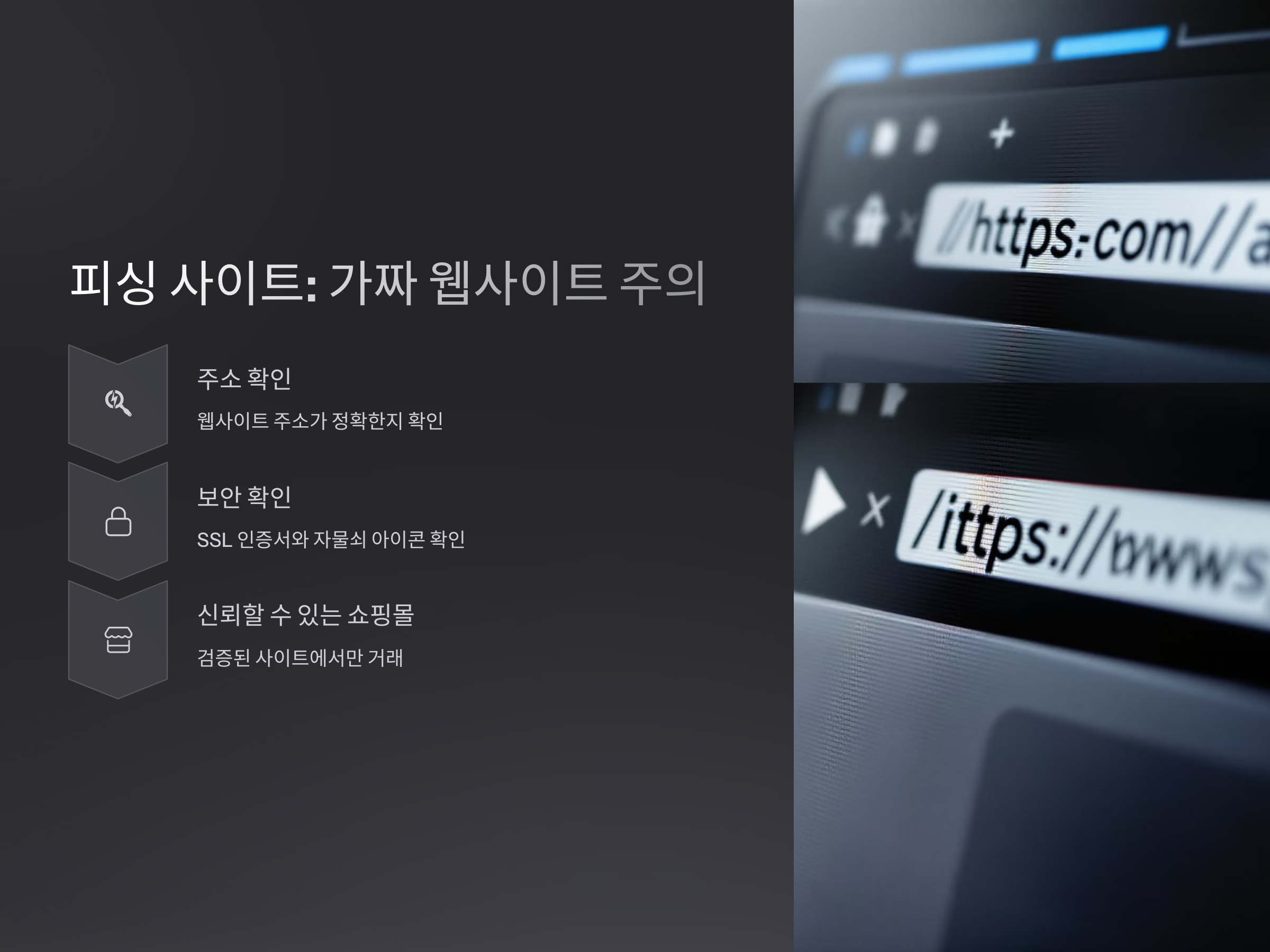 - 웹사이트 주소가 정확한지 다시 한 번 확인하세요. 가짜 사이트는 종종 주소에 미세한 차이를 보입니다.
