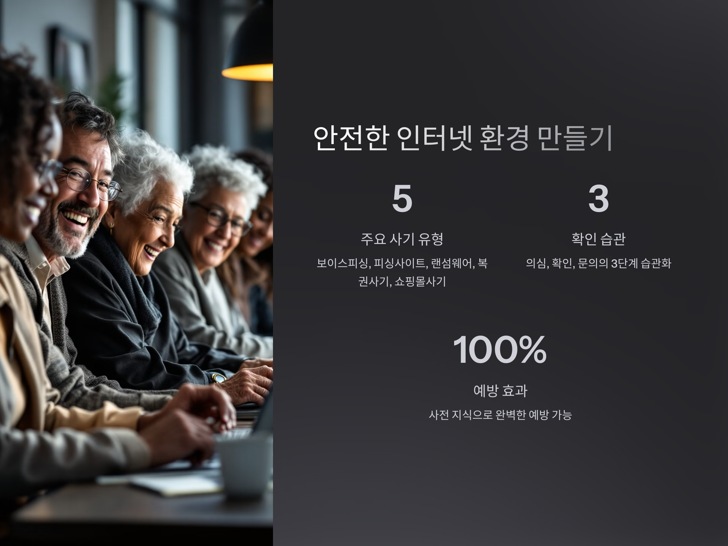 인터넷 사기는 날로 진화하고 있으며, 사기범들은 점점 더 교묘하게 접근하고 있습니다. 따라서 시니어 분들은 주의를 기울여야 하며, 사기의 주요 수법을 미리 알고 대비하는 것이 가장 중요합니다. 개인 정보 보호는 기본 중의 기본이며, 의심스러운 연락이나 사이트를 만났을 때는 주저하지 말고 전문가의 도움을 받는 것이 좋습니다. 이를 통해 피해를 예방하고, 안전한 인터넷 환경을 유지할 수 있습니다.