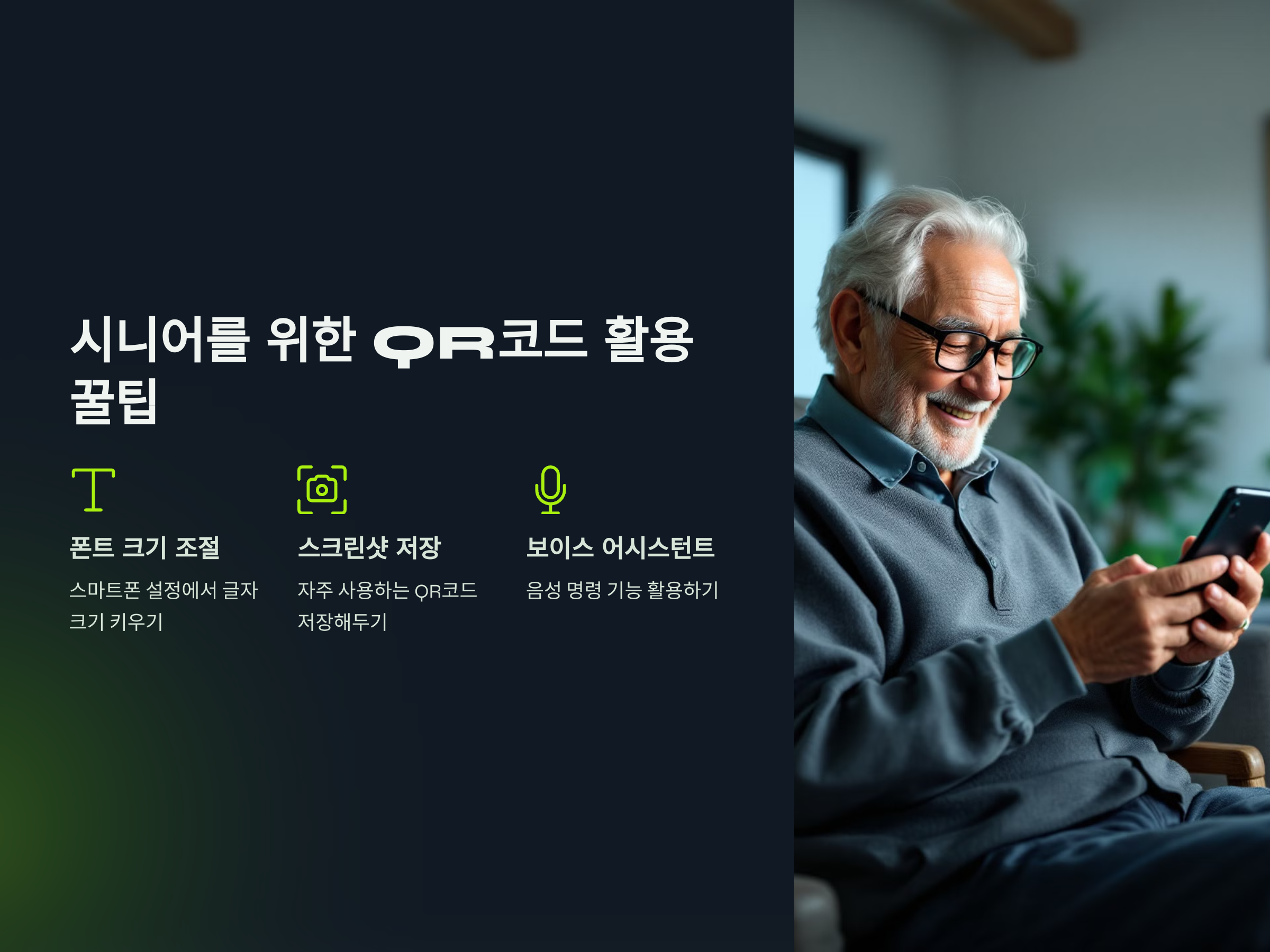 시니어분들이 QR코드를 스캔하기 어려울 경우, 스마트폰의 음성 명령 기능을 이용하면 더욱 편리합니다.