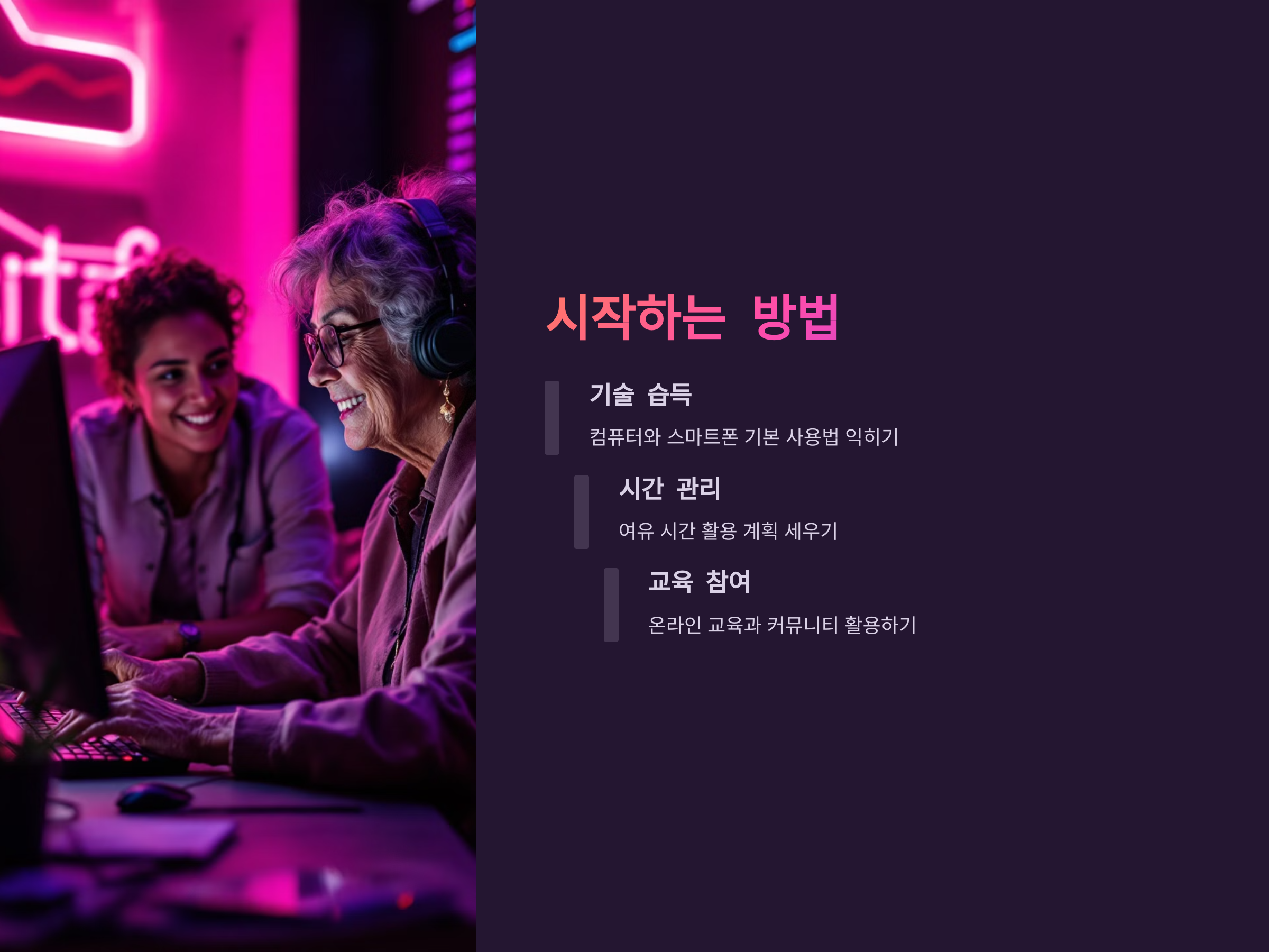 기술적인 부분에 대한 부담이 있을 수 있지만, 다양한 온라인 플랫폼에서는 초보자도 쉽게 사용할 수 있는 기능들을 제공합니다. 특히, 시니어를 대상으로 한 온라인 교육과정도 많아 디지털 기술을 익히는 데 어려움이 없다는 점도 시니어들이 온라인 부업을 시작하는데 중요한 도움이 됩니다.