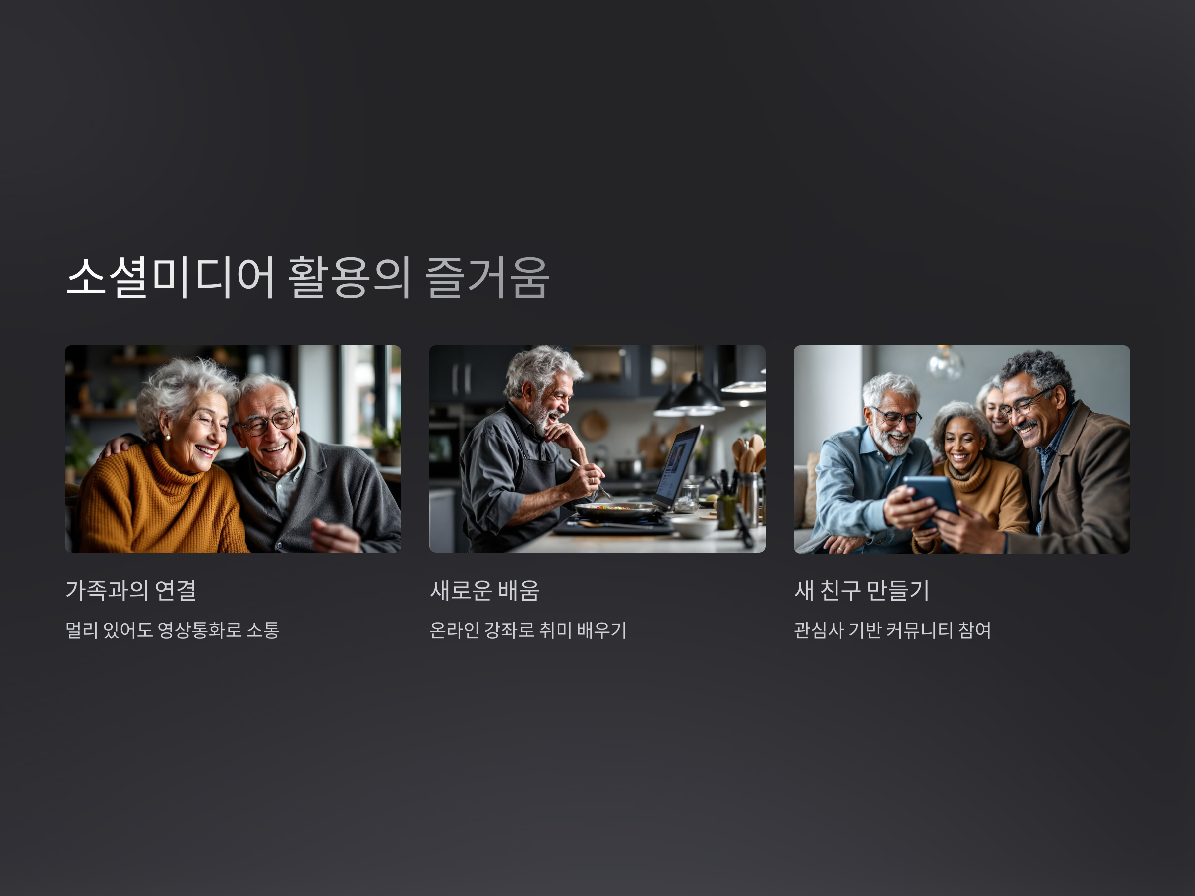 소셜미디어는 시니어에게도 매우 유용한 도구입니다. 가족과 쉽게 연락하고, 취미와 건강 관리 정보를 얻으며, 새로운 친구를 만날 수도 있습니다. 처음에는 어렵게 느껴질 수 있지만, 하나씩 배워가면서 익숙해지면 생활이 더욱 편리하고 즐거워질 것입니다.