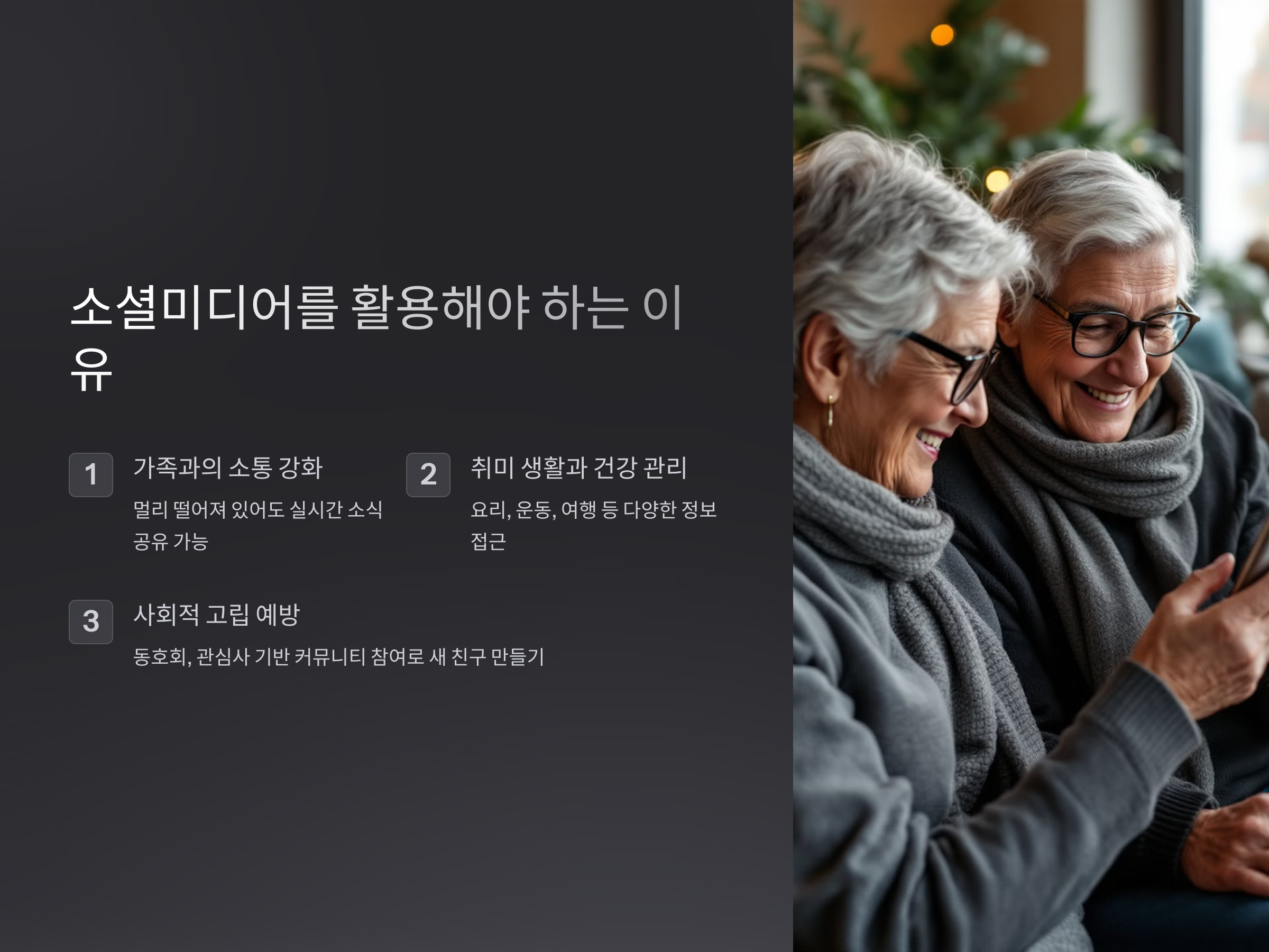 현대 사회에서 소셜미디어는 단순한 놀이나 유행이 아닙니다. 정보 공유, 인간관계 유지, 건강 관리, 심지어 경제활동까지 다양한 방면에서 활용되고 있습니다. 특히 시니어들에게 SNS는 새로운 세상과 연결되는 중요한 도구가 될 수 있습니다.
