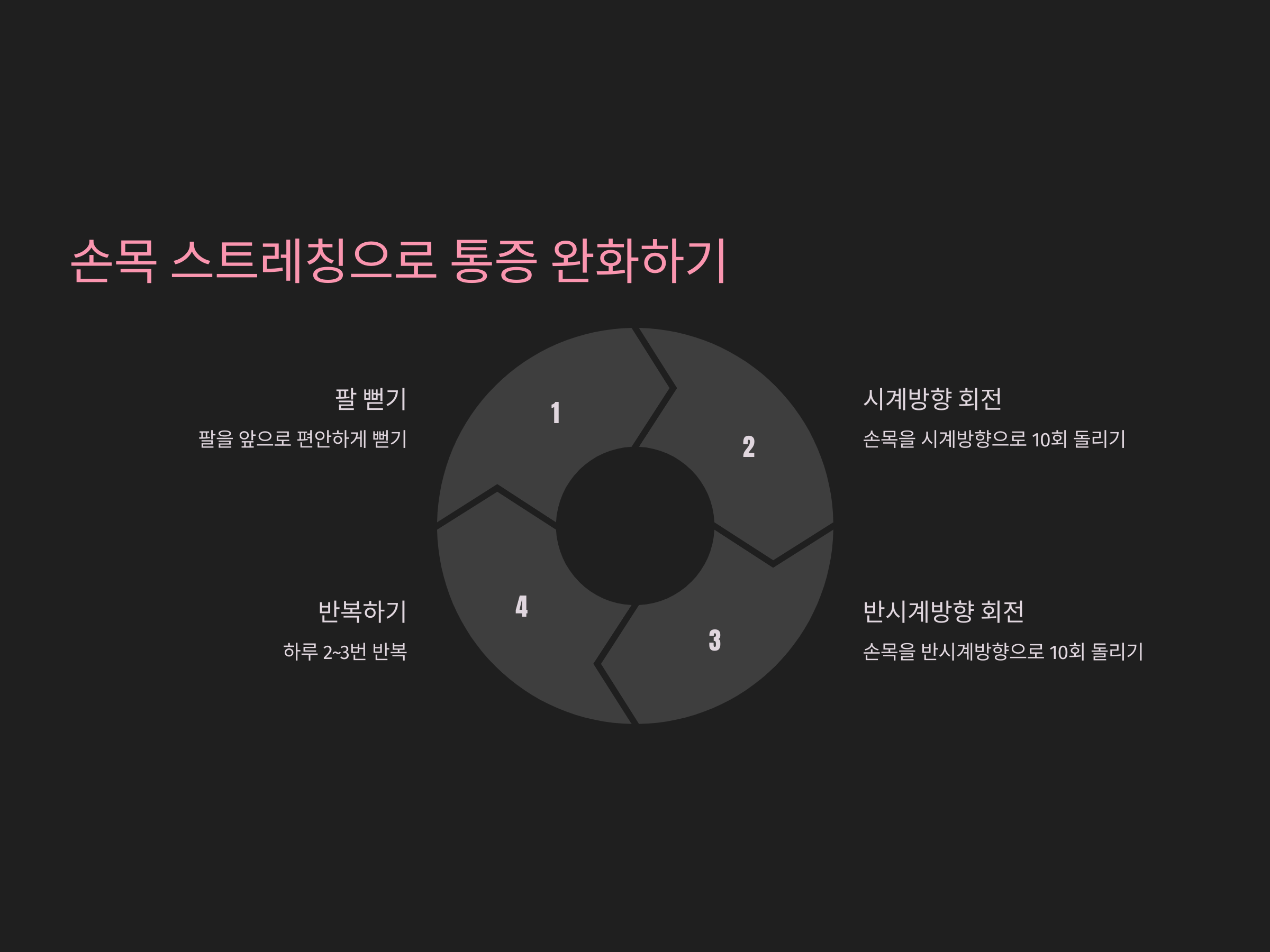 - 손목을 시계방향과 반시계방향으로 각각 10회씩 돌려줍니다.