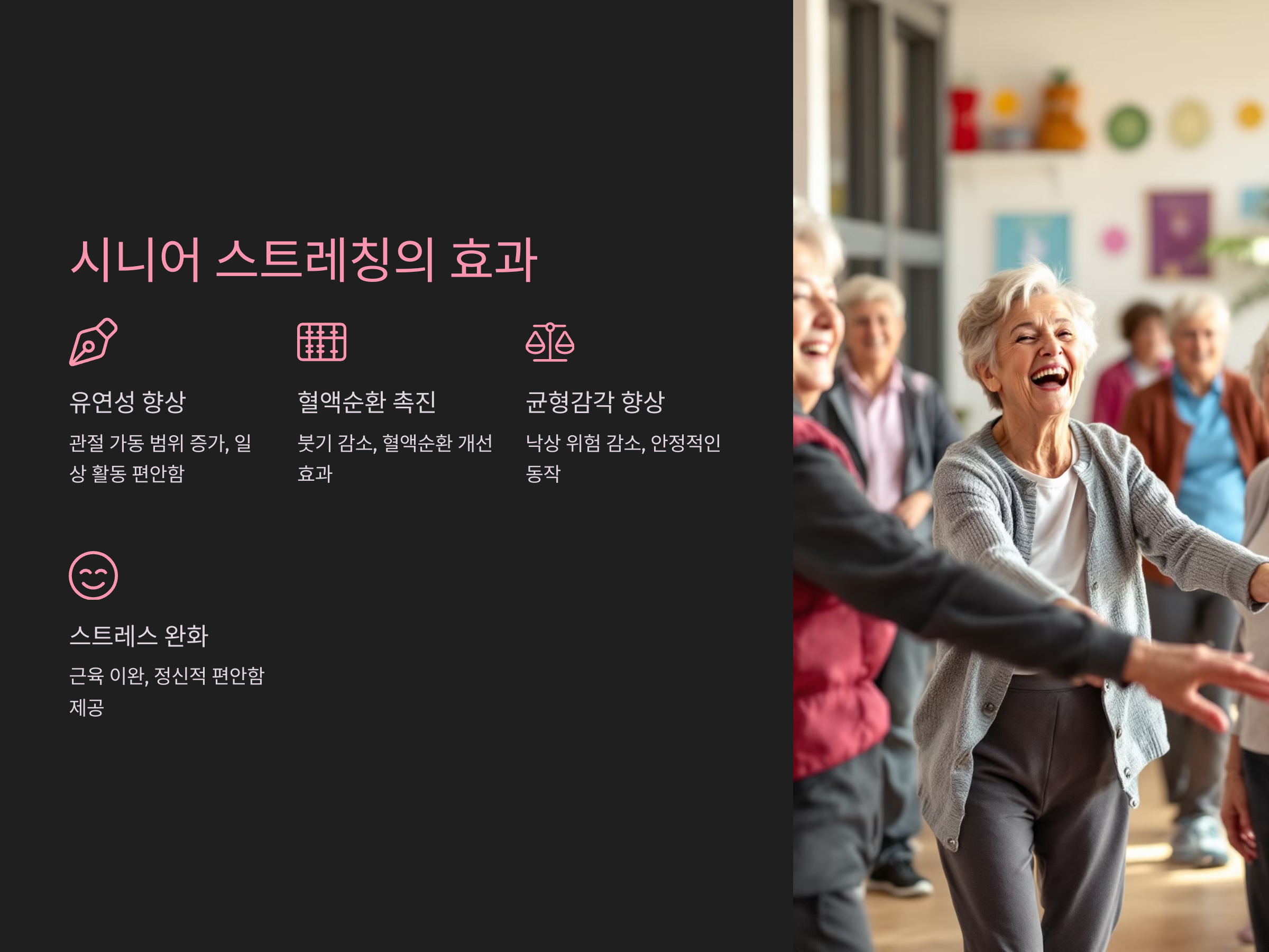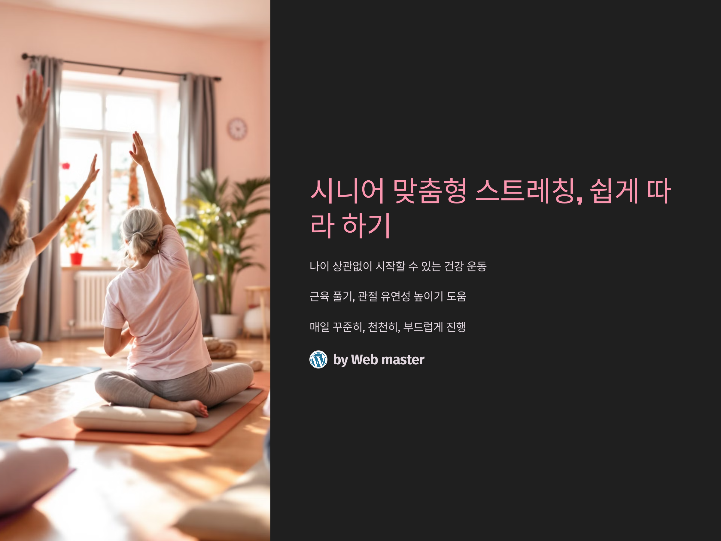 스트레칭은 나이가 들어도 꾸준히 할 수 있는 운동 중 하나입니다. 특히 시니어분들에게는 근육을 풀어주고, 관절의 유연성을 높이는 데 도움이 됩니다. 하지만 스트레칭이 어려워 보일 수 있고, 무엇을 어떻게 해야 할지 막막할 수 있죠. 이 포스팅에서는 시니어 맞춤형 스트레칭을 소개하고, 쉽게 따라 할 수 있는 방법을 알려드리겠습니다. 나이에 상관없이 언제든지 시작할 수 있는 운동을 통해 몸의 건강을 지켜보세요.