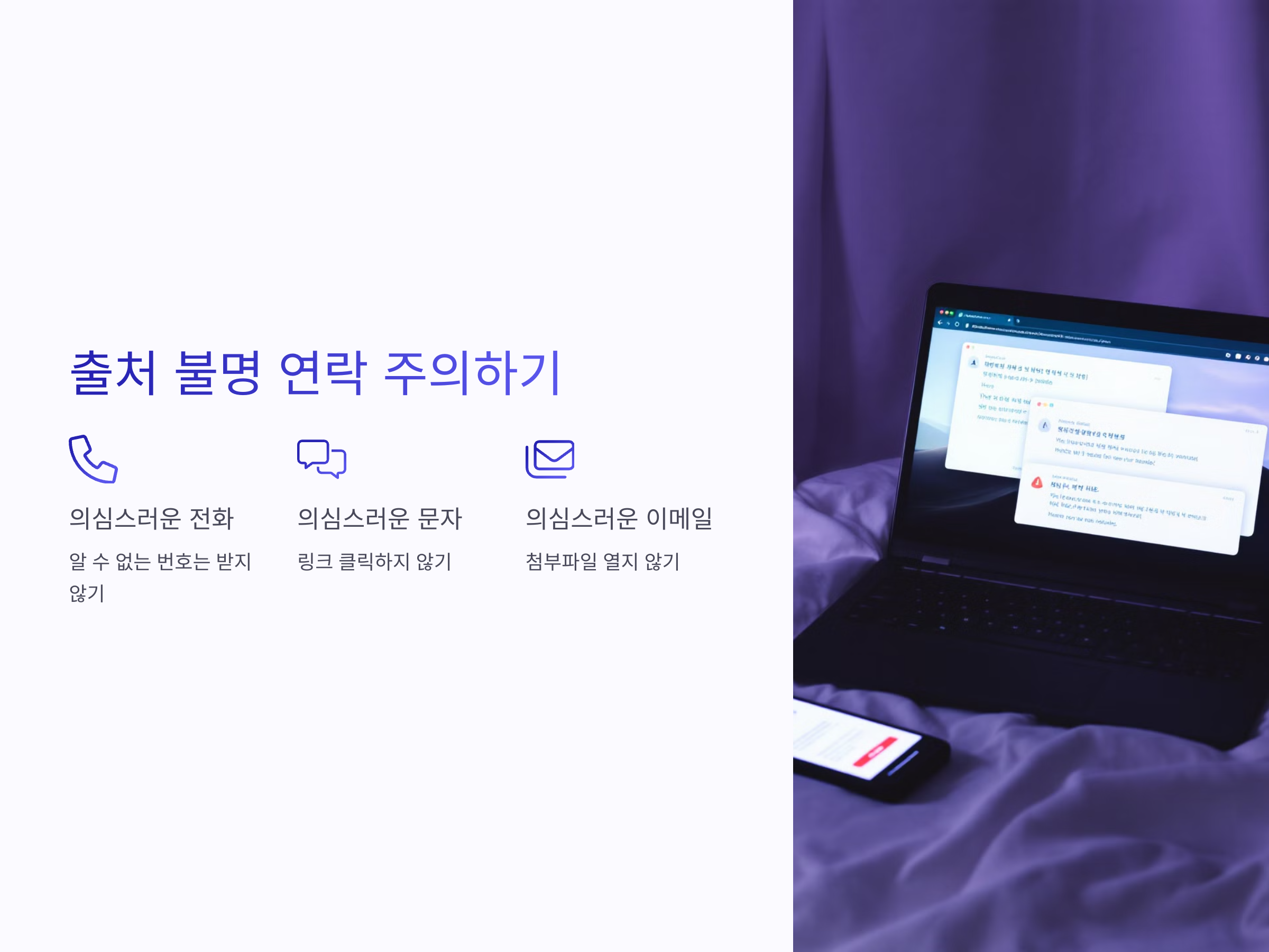 1. 출처 불명의 전화, 문자, 이메일에 주의하기