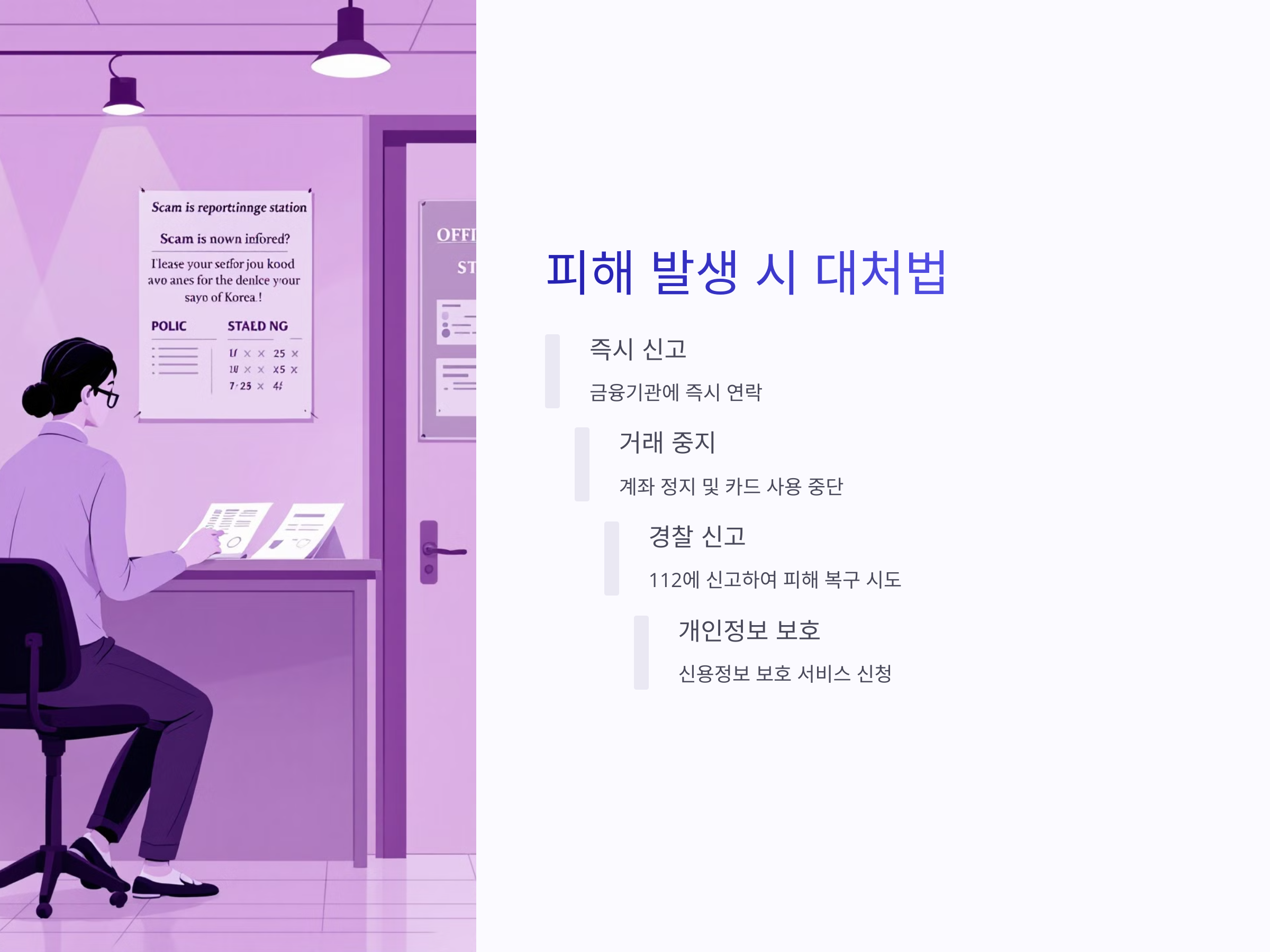 - 주요 금융기관이나 공공기관에 해당 사실을 알려 추가 피해를 예방합니다.