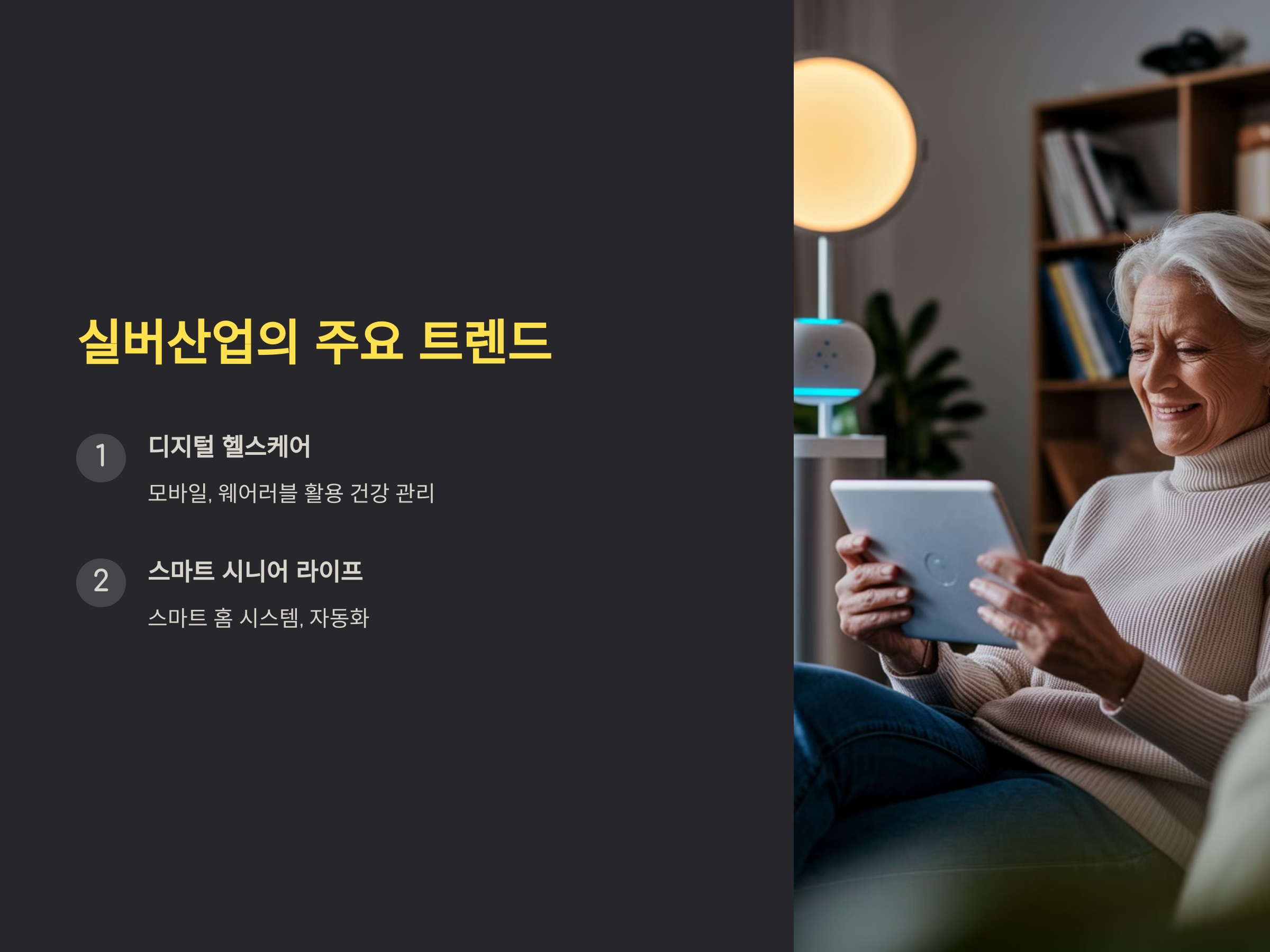 실버산업은 다양한 분야에서 혁신적인 트렌드를 이끌어가고 있습니다. 그 중 가장 큰 트렌드는 바로 ‘디지털 헬스케어’와 ‘스마트 시니어 라이프’입니다.