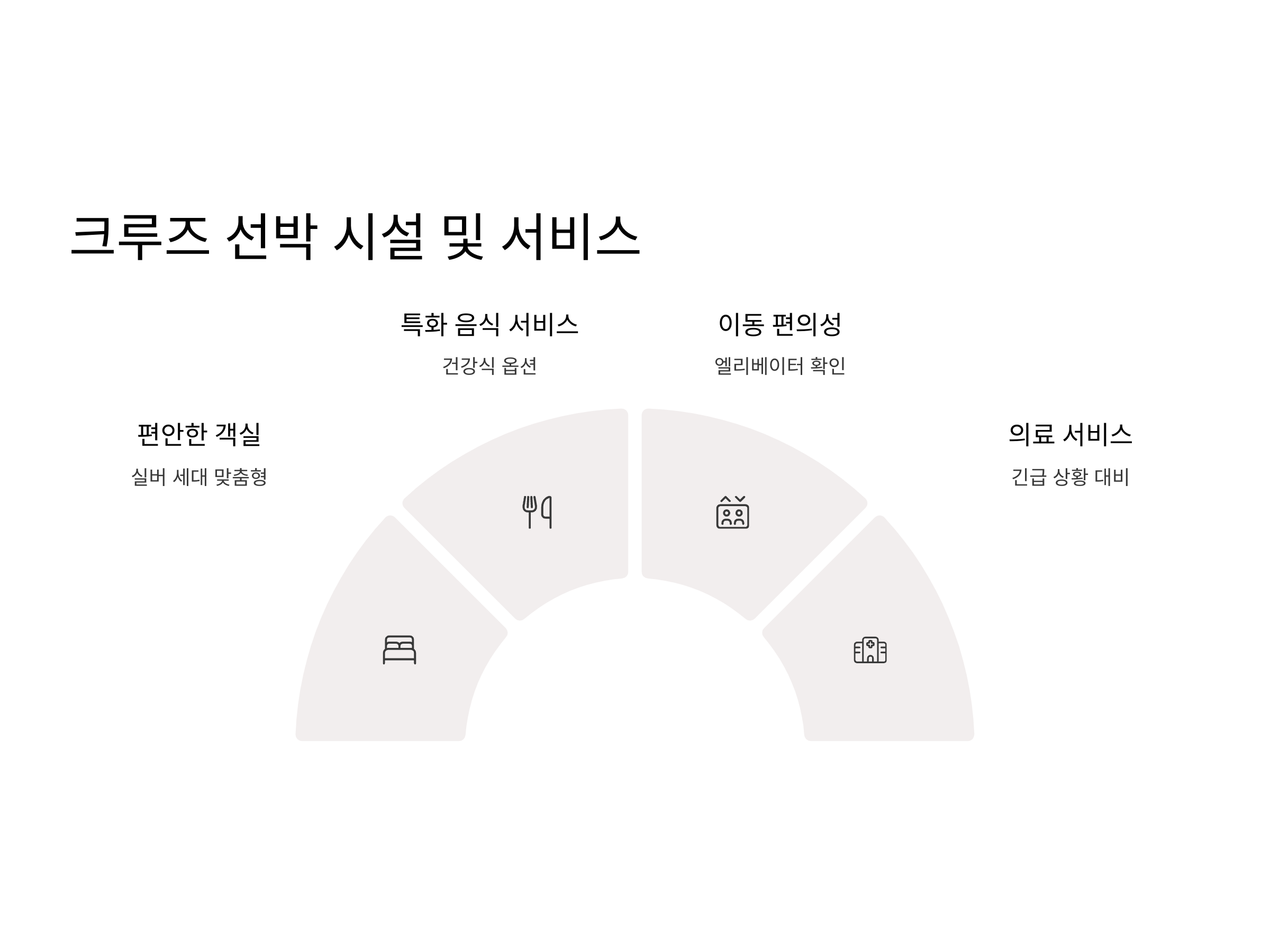 실버 세대에게 추천되는 크루즈 선박은 편안한 시설을 제공하는 곳으로, 계단이 적고 엘리베이터가 잘 갖춰져 있는 선박이 좋습니다. 또한, 선박 내에는 건강을 관리할 수 있는 피트니스 센터와 수영장, 요가 프로그램 등의 활동이 있는지 확인하는 것이 좋습니다. 크루즈 여행 중 긴급 상황에 대비한 의료 서비스가 제공되는지 여부도 꼭 확인하세요.