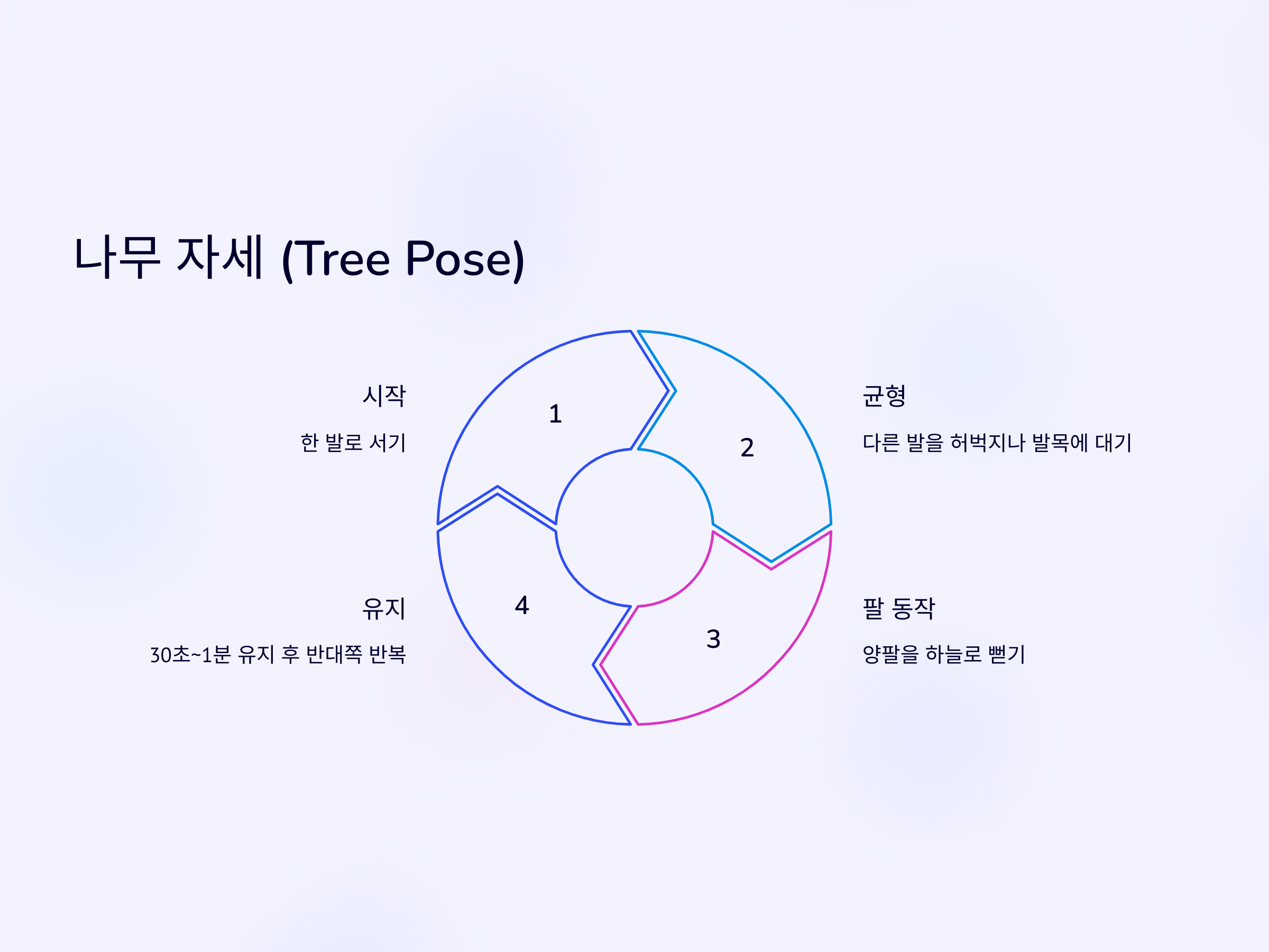 나무 자세는 한 발로 균형을 잡는 동작으로, 몸의 균형 감각을 높이고 집중력을 향상시키는 데 도움을 줍니다. 초보자도 쉽게 할 수 있는 동작이며, 하체의 근육을 강화하는 데 효과적입니다.