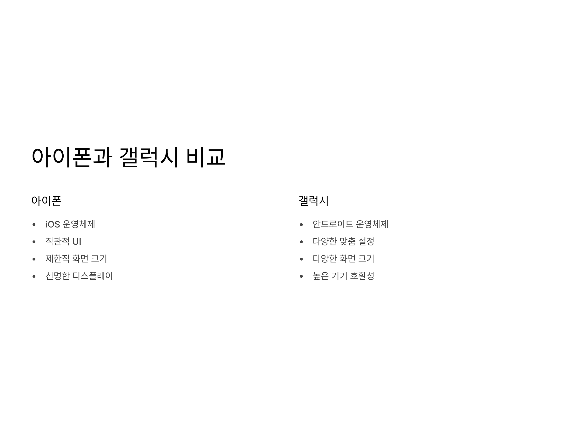 아이폰과 갤럭시의 비교