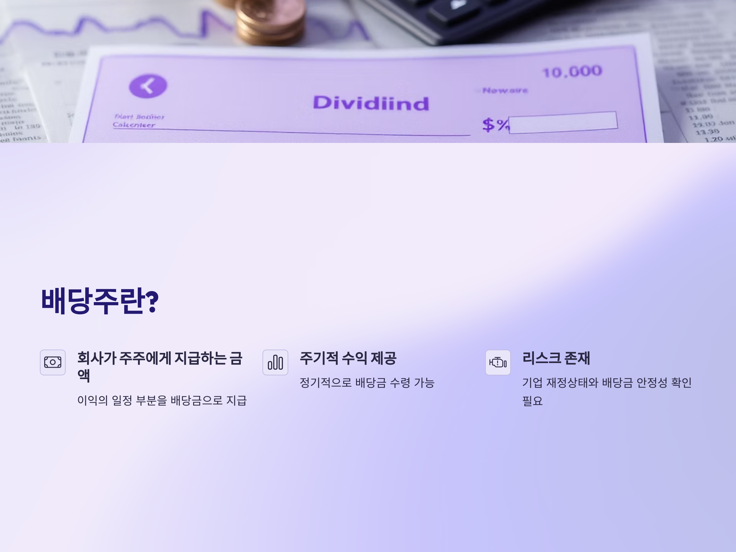 배당주는 회사가 주주들에게 지급하는 일정 금액의 배당금을 포함한 주식입니다. 회사가 이익을 내면 일정 부분을 배당금으로 지급하게 되는데, 주주들은 이를 통해 주기적인 수익을 얻습니다. 하지만 배당주 투자에도 리스크가 존재하며, 특히 배당금을 지급하는 기업의 재정 상태와 배당금의 안정성을 꼼꼼히 살펴보는 것이 중요합니다.
