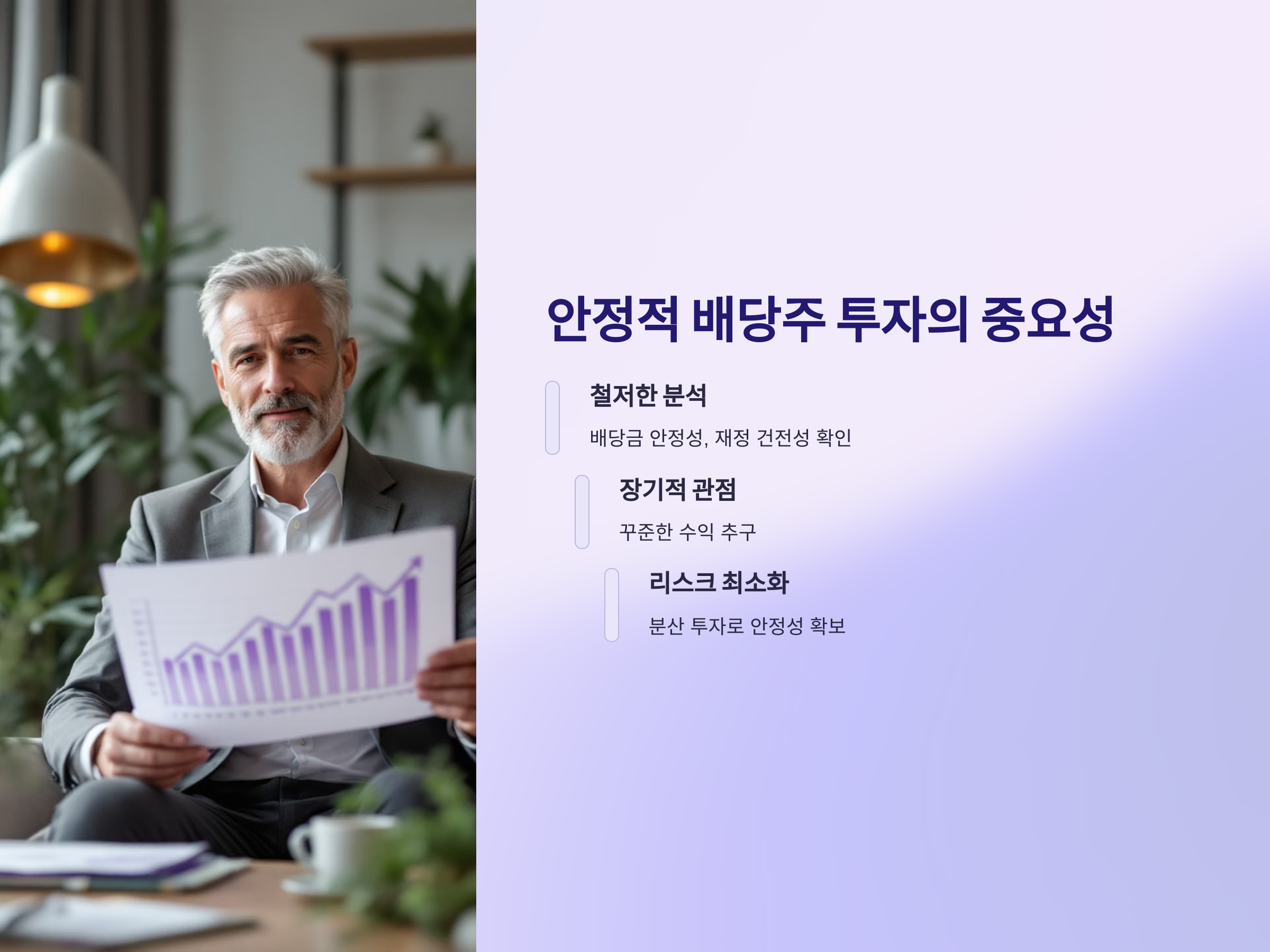 안정적인 배당주 투자를 위해서는 배당금 지급 이력, 배당 성향, 그리고 기업의 재정 건강 등을 고려하는 것이 필수적입니다. 또한, 이러한 요소를 분석하여 안정적인 수익을 추구할 수 있는 배당주를 선택하는 방법에 대해 좀 더 자세히 설명드리겠습니다.