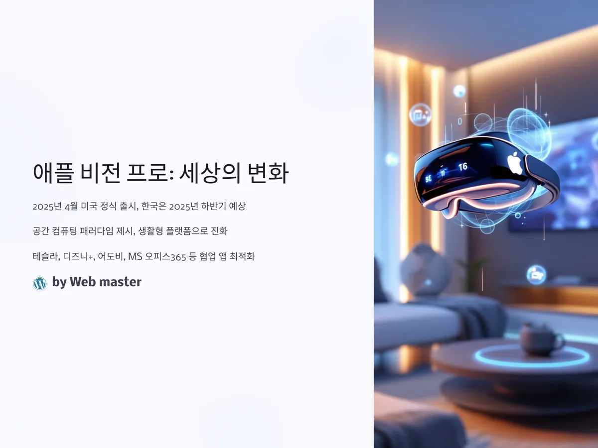 2025년 4월, 애플의 첫 번째 혼합현실 헤드셋 '비전 프로'가 미국 정식 출시를 시작으로 전 세계로의 보급이 가속화되고 있습니다. 기존 VR/AR 기기의 틀을 깨고, 공간 컴퓨팅이라는 새로운 패러다임을 제시하며, 이제는 단순한 '체험형 디바이스'를 넘어선 '생활형 플랫폼'으로 주목받고 있습니다. 국내 출시는 2025년 하반기로 예측되며, 한국어 최적화 OS와 다양한 지역 특화 앱 개발이 동반될 것으로 보입니다.