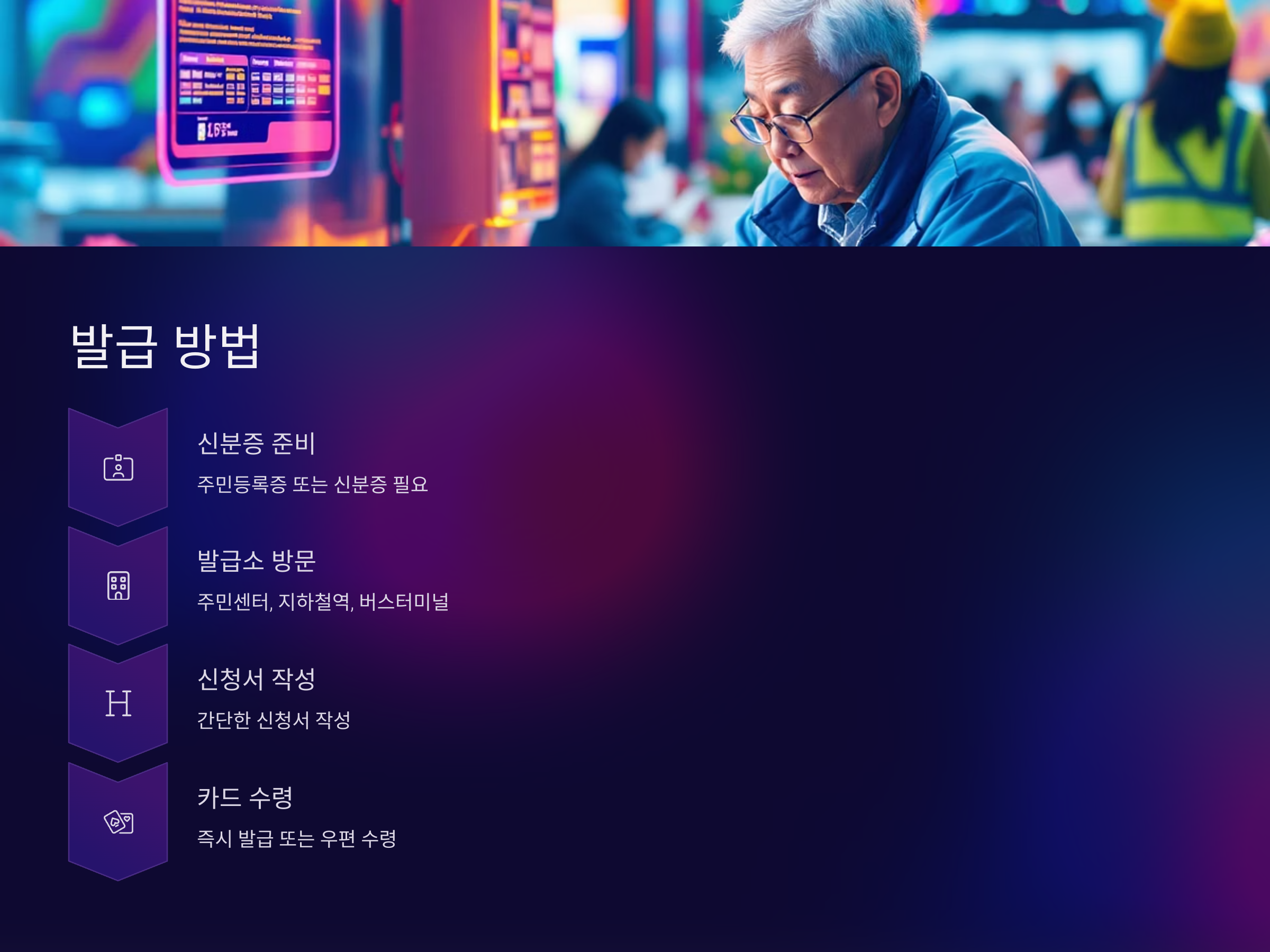 최근에는 교통카드를 이용한 다양한 할인 혜택이 제공되고 있어, 어르신들이 이를 잘 활용하면 이동비용을 크게 절감할 수 있습니다. 교통카드 발급은 복잡하지 않지만, 잘 모르고 계신 분들이 많아 상세히 안내드리겠습니다.