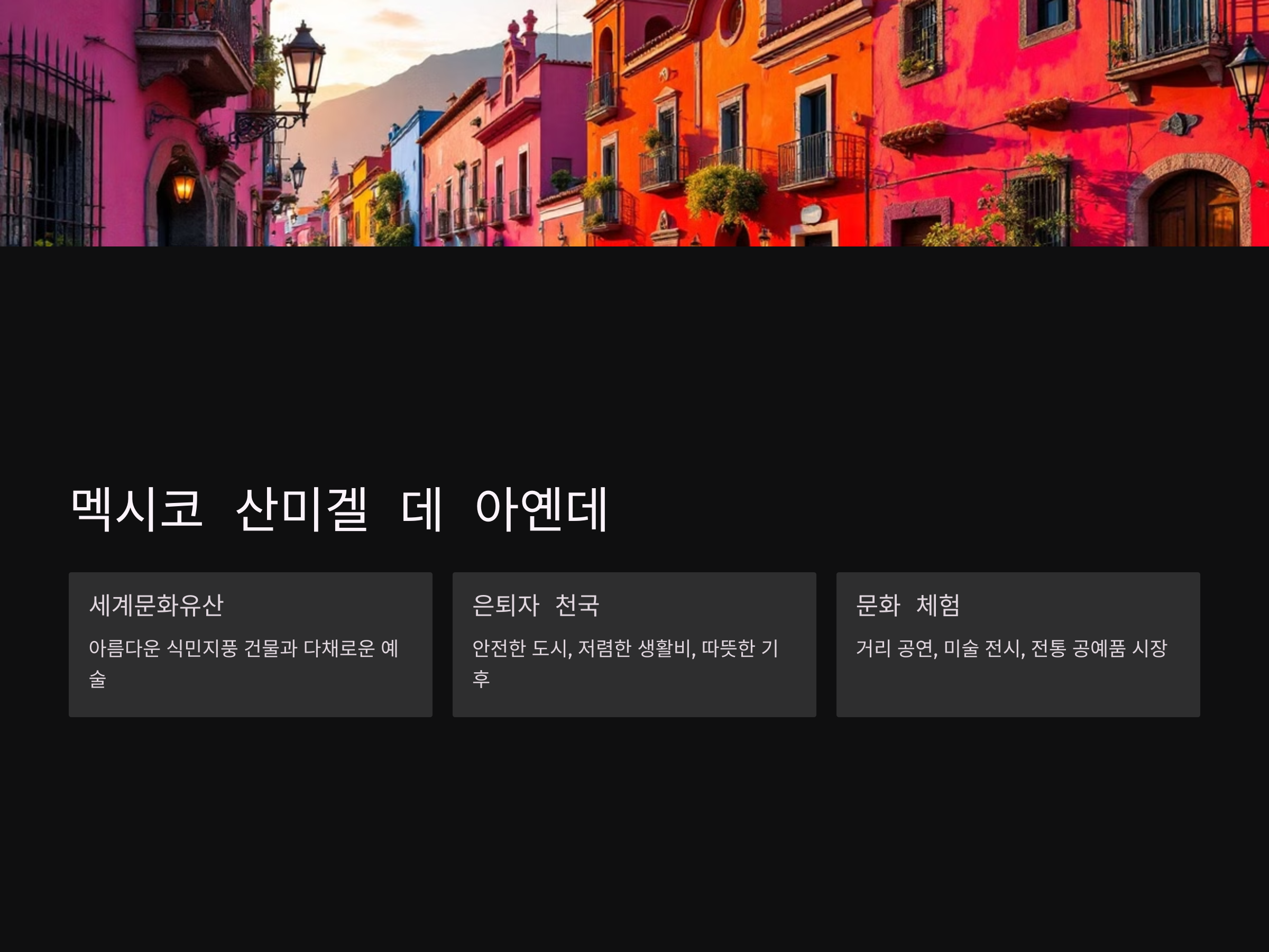 시니어들이 최근 주목하고 있는 이색 여행지로는 멕시코의 '산미겔 데 아옌데(San Miguel de Allende)'가 있습니다. 세계문화유산으로 지정된 이 도시는 아름다운 식민지풍 건물과 다채로운 예술, 축제가 가득한 곳으로 전 세계 은퇴자들이 이주할 만큼 매력적인 지역입니다.