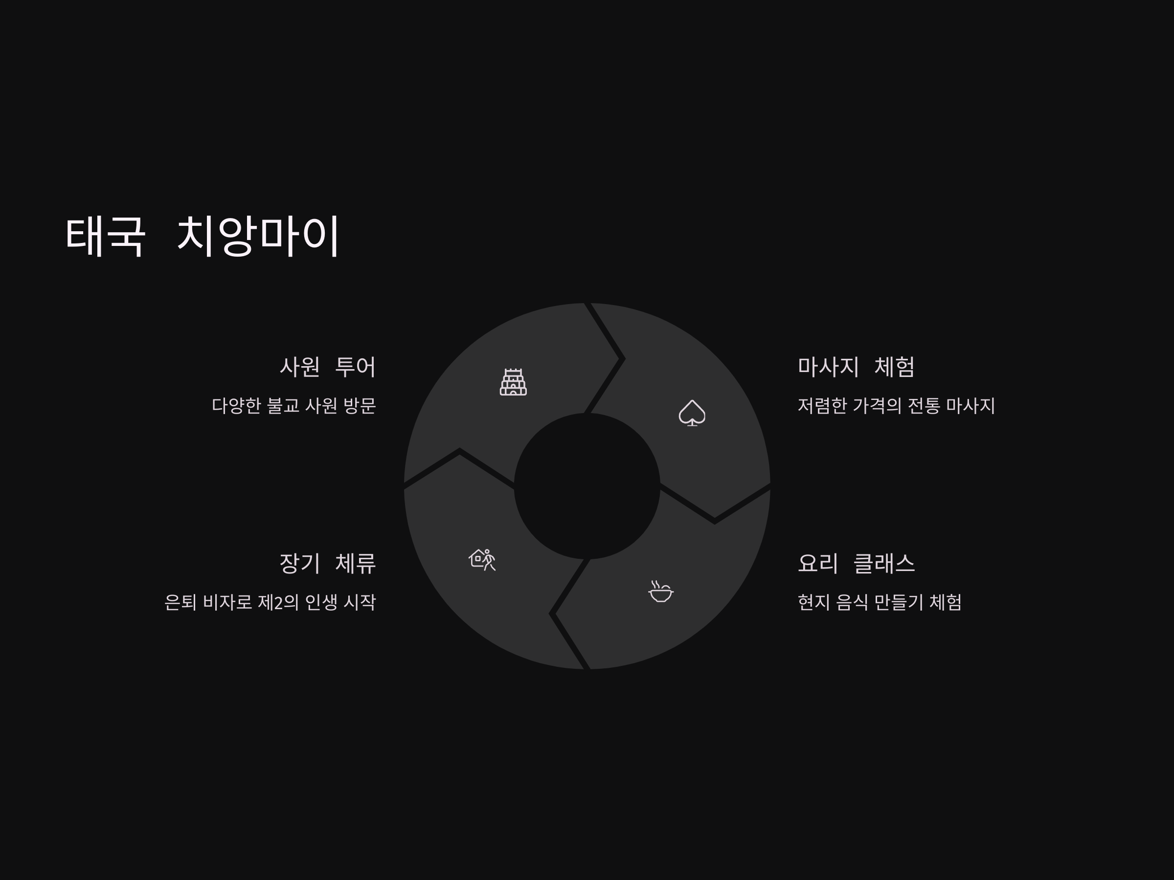 치앙마이는 의료시설도 수준급이며, 장기체류 시에는 현지에서 은퇴 비자 신청도 고려할 수 있어 인생 제2막을 시작하기에도 좋은 곳입니다. 시내에서 운영하는 시니어 대상 요가 클래스나 영어 모임도 있어 다양한 사람들과 교류할 기회도 많습니다.