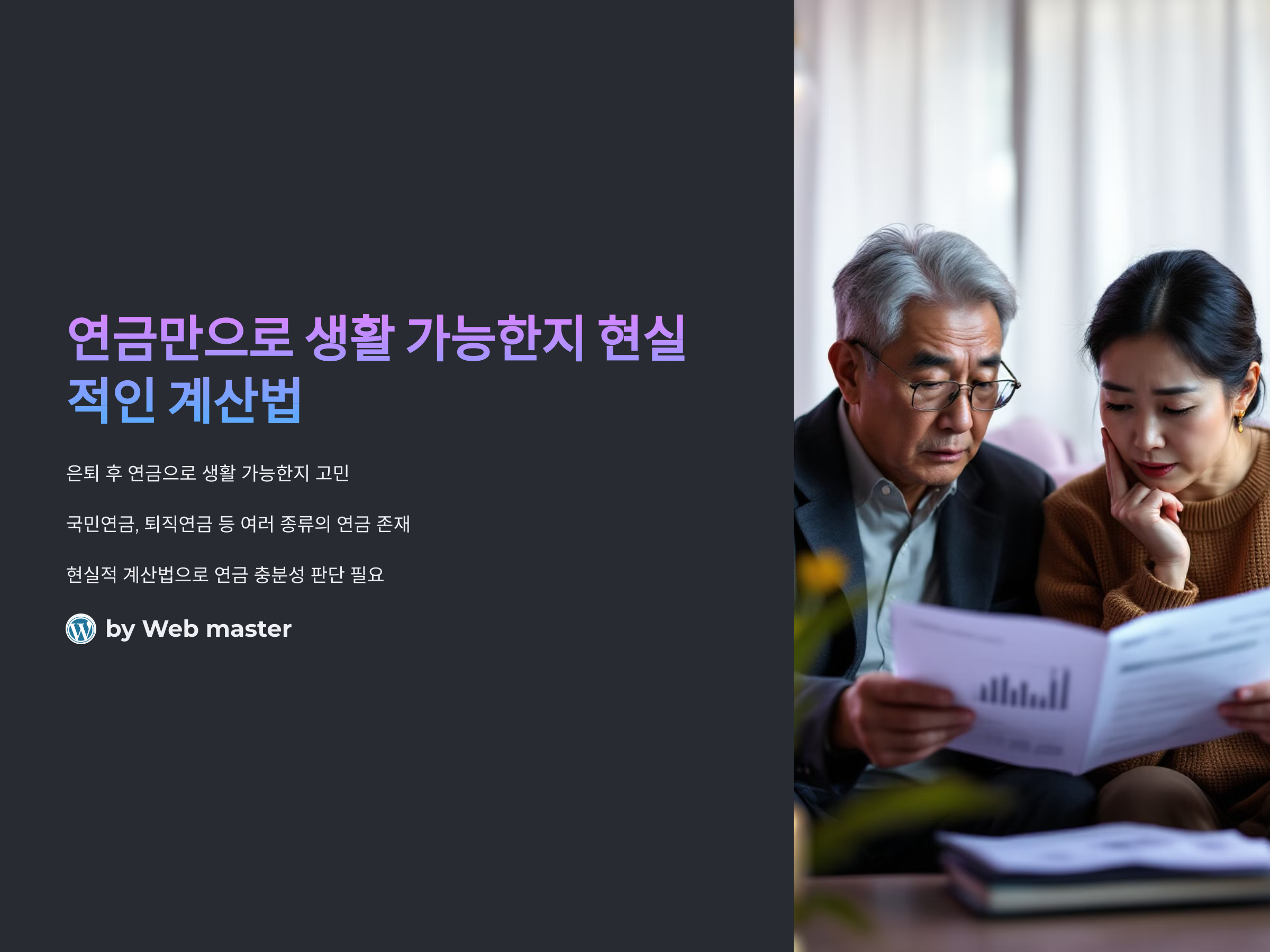 연금을 받는 것으로 생활이 가능한지에 대해 많은 사람들이 고민합니다. 특히 은퇴 후의 삶을 계획할 때, 연금만으로 생활이 가능한지에 대한 의문은 더 커지기 마련입니다. 연금은 국가에서 제공하는 국민연금, 직장에서 제공하는 퇴직연금 등 여러 종류가 있지만, 이들만으로 현실적으로 생활이 가능한지 계산해 보는 것이 중요합니다. 이번 글에서는 연금으로 생활 가능한지 판단하는 방법을 현실적인 계산법을 통해 알아보겠습니다.