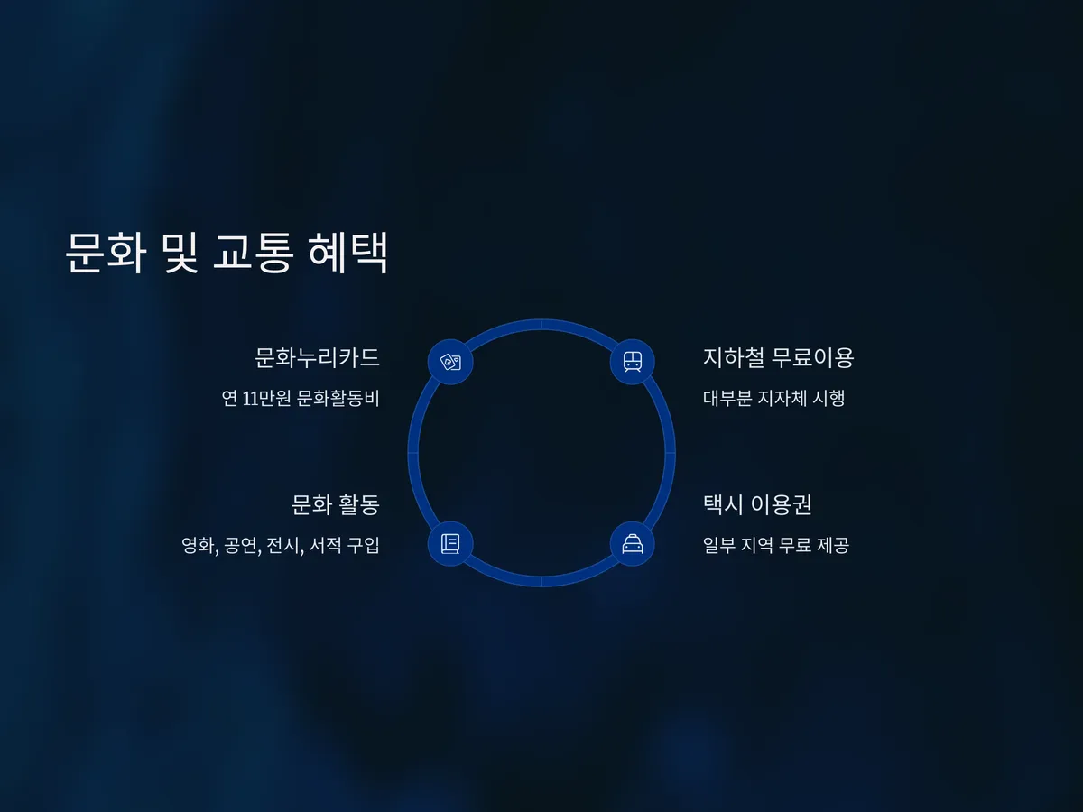 또한 ‘지하철 무료 이용’과 같은 대중교통 할인 혜택은 대부분 지자체에서 운영 중이며, 일부 지역은 고령층을 위한 무료 택시 이용권도 제공하고 있습니다. 이러한 혜택은 신청만 하면 손쉽게 누릴 수 있으므로, 반드시 확인해 보는 것이 좋습니다.
