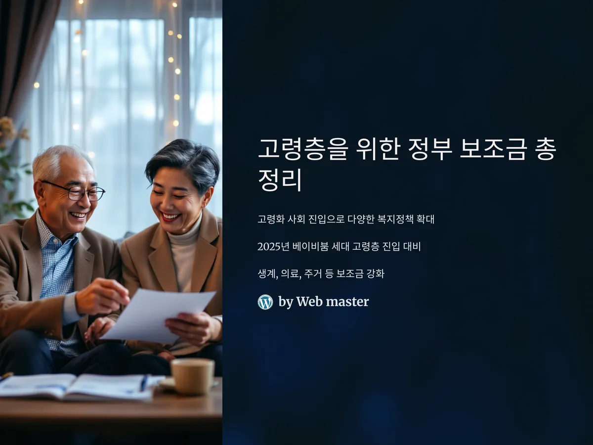 이 글에서는 고령층이 놓치지 말아야 할 대표적인 정부 보조금 제도들을 항목별로 상세히 정리했습니다. 자격 조건, 신청 방법, 지원 금액 등을 꼼꼼히 확인하여 본인 또는 부모님이 꼭 챙겨야 할 지원금을 빠짐없이 누려보세요.