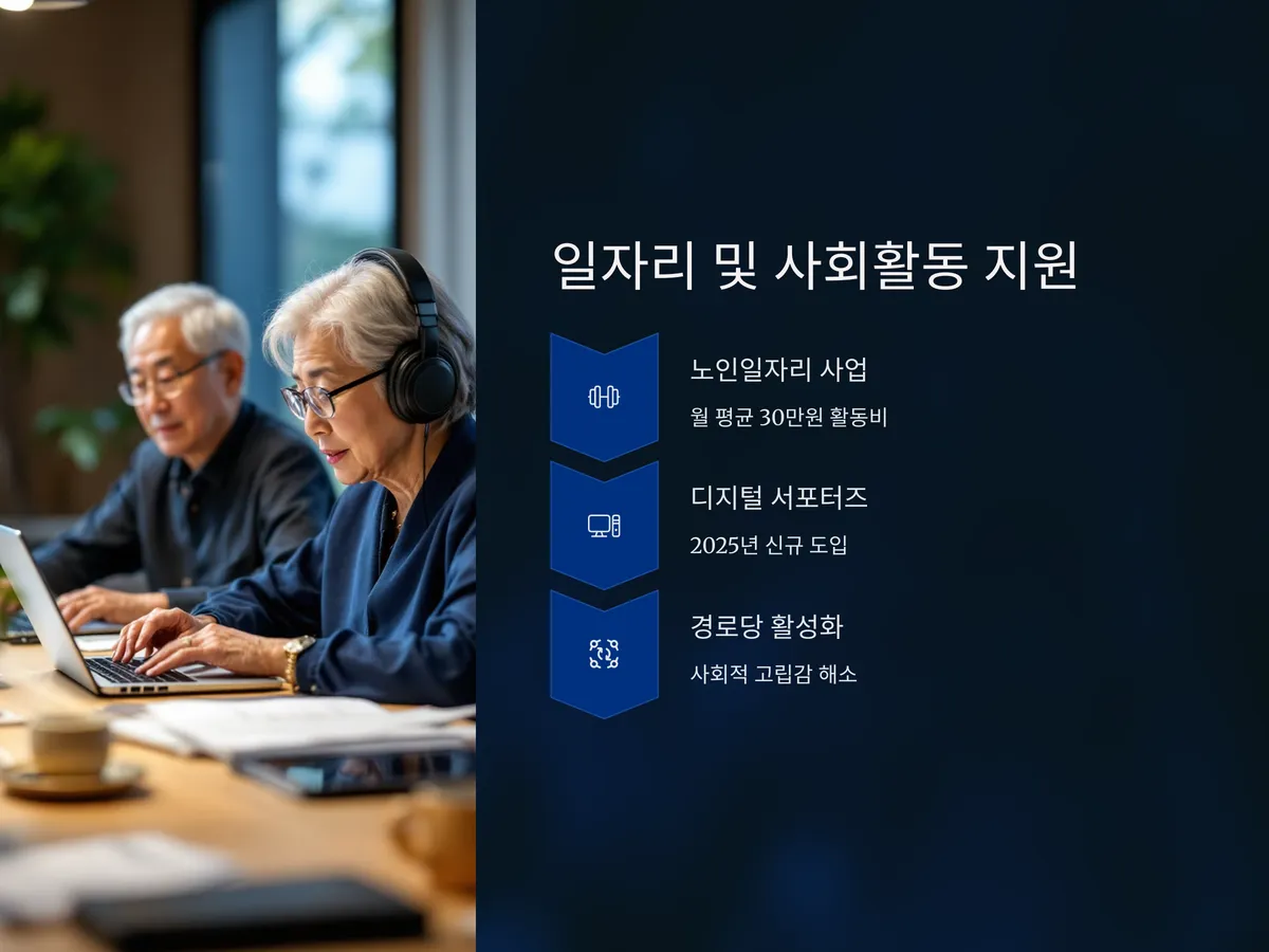2025년부터는 디지털 관련 교육을 수료한 고령층을 위한 ‘시니어 디지털 서포터즈’ 프로그램도 새롭게 도입돼 고령자의 재취업 기회도 확대될 예정입니다. 또한 ‘경로당 활성화 사업’ 등을 통해 사회적 고립감을 줄이려는 정책도 병행 중입니다.
