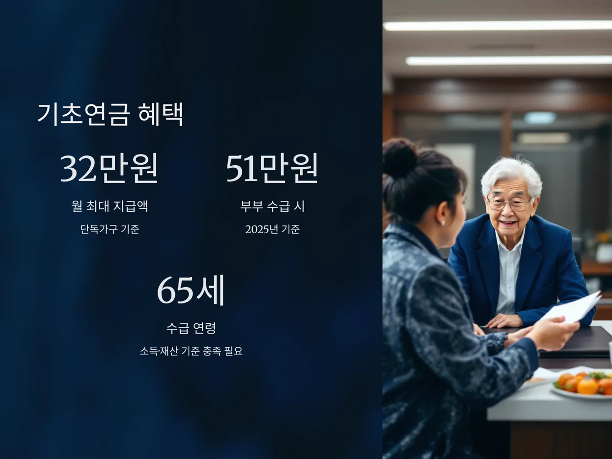 기초연금은 만 65세 이상 어르신 중 소득 및 재산이 일정 수준 이하일 경우 매월 일정 금액의 연금을 지급하는 제도입니다. 2025년 기준 단독 가구는 월 최대 32만 3,180원까지 받을 수 있으며, 부부가 함께 수급 시에는 51만 원대로 조정됩니다.