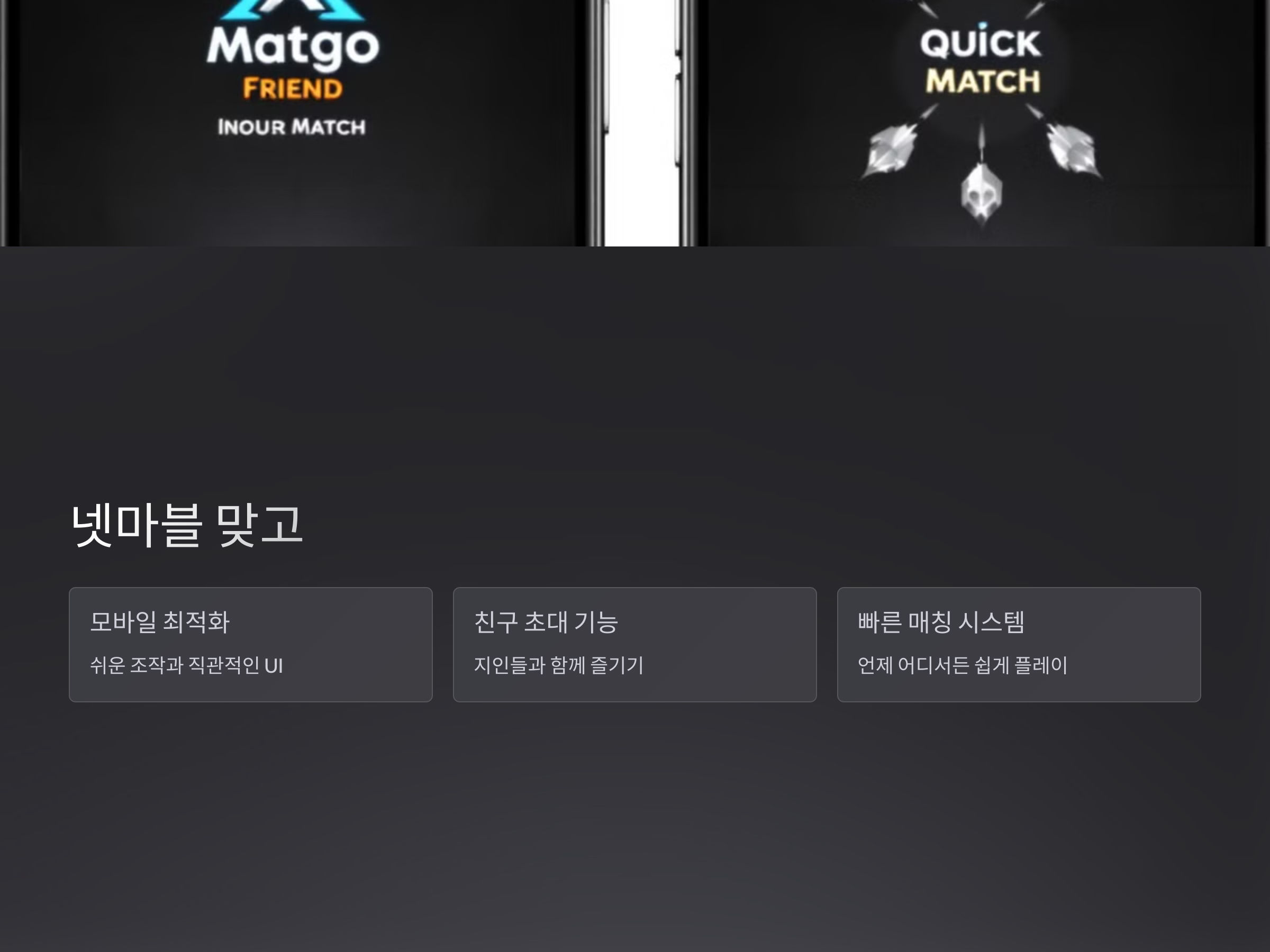 넷마블의 맞고 게임은 모바일 전용으로 최적화되어 있으며, 쉬운 조작과 직관적인 UI가 특징입니다.
