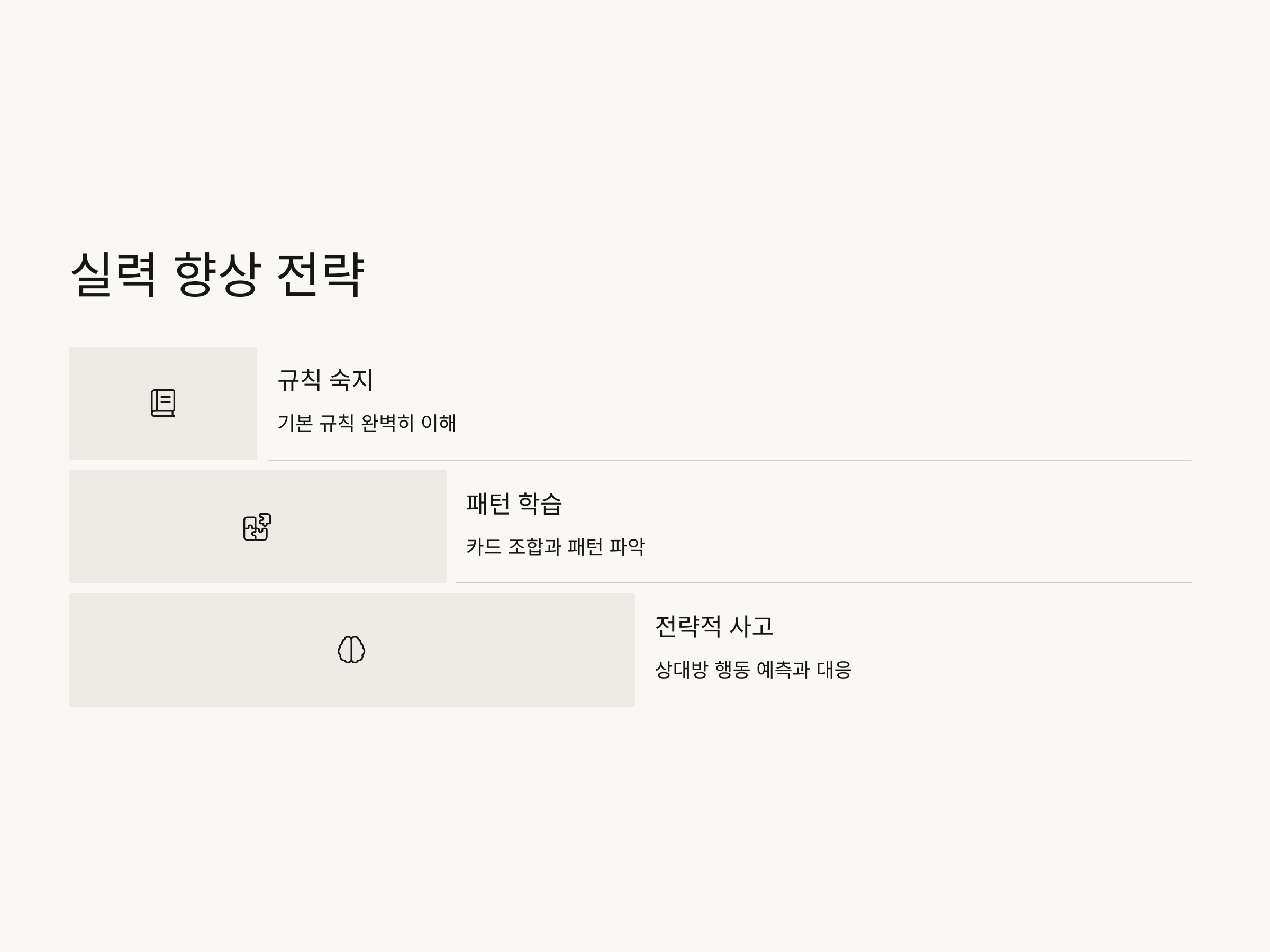 초보자라면, 우선 맞고의 기본 규칙을 숙지한 후, 패의 조합과 상대의 플레이 스타일을 예측하는 전략을 배워야 합니다. 중급 이상이 되면 상대방의 행동을 예측하고, 카드를 미리 판단하여 전략적으로 플레이하는 것이 중요합니다. 맞고의 승패는 주로 경험과 직관에 의존하기 때문에, 게임을 많이 할수록 실력이 향상됩니다.
