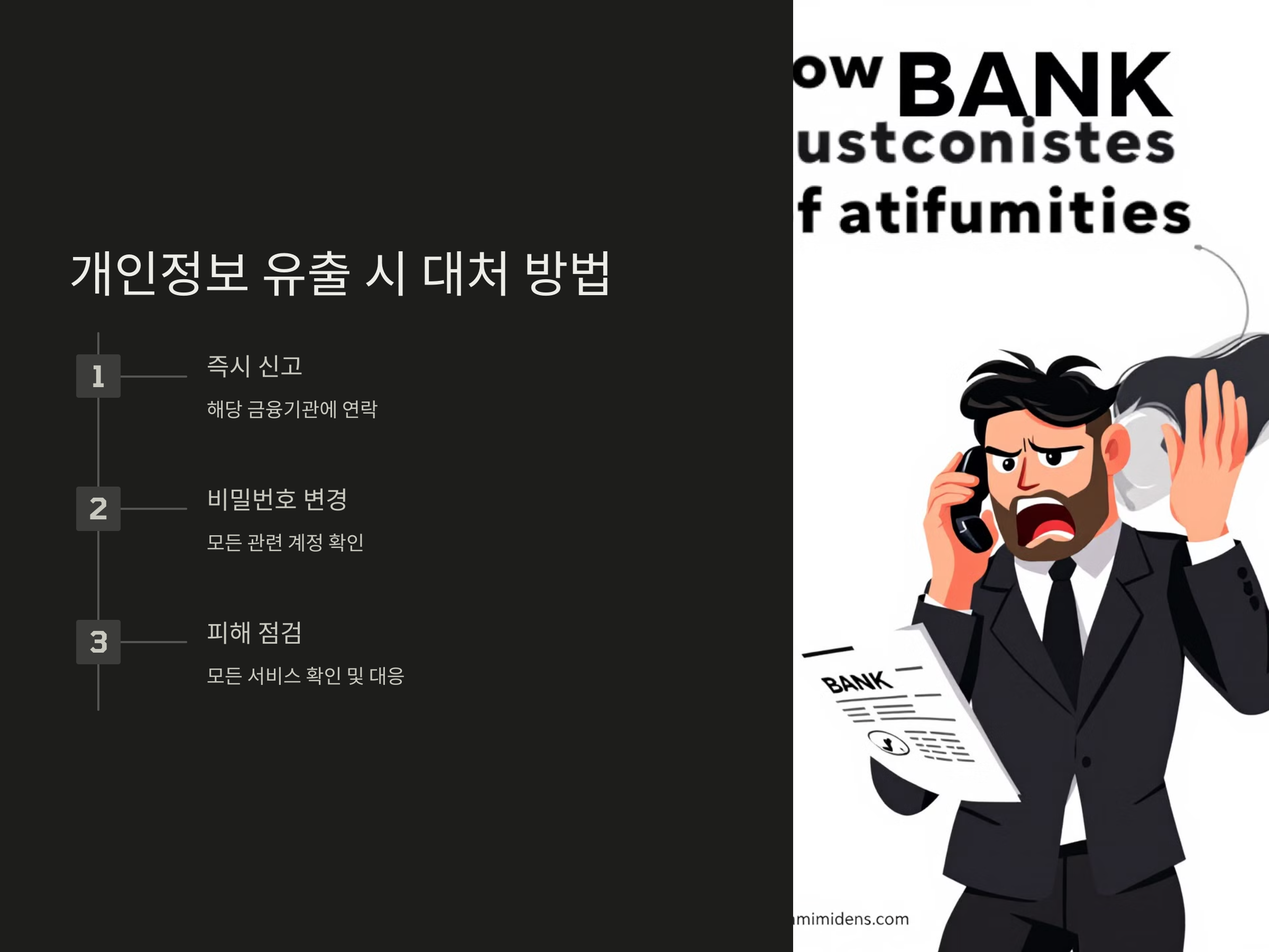개인정보가 유출된 경우, 즉시 해당 금융기관에 신고하고, 계좌 비밀번호를 변경하는 것이 중요합니다. 또한, 피해가 발생할 수 있는 모든 서비스를 점검하고, 신속하게 대응해야 합니다.