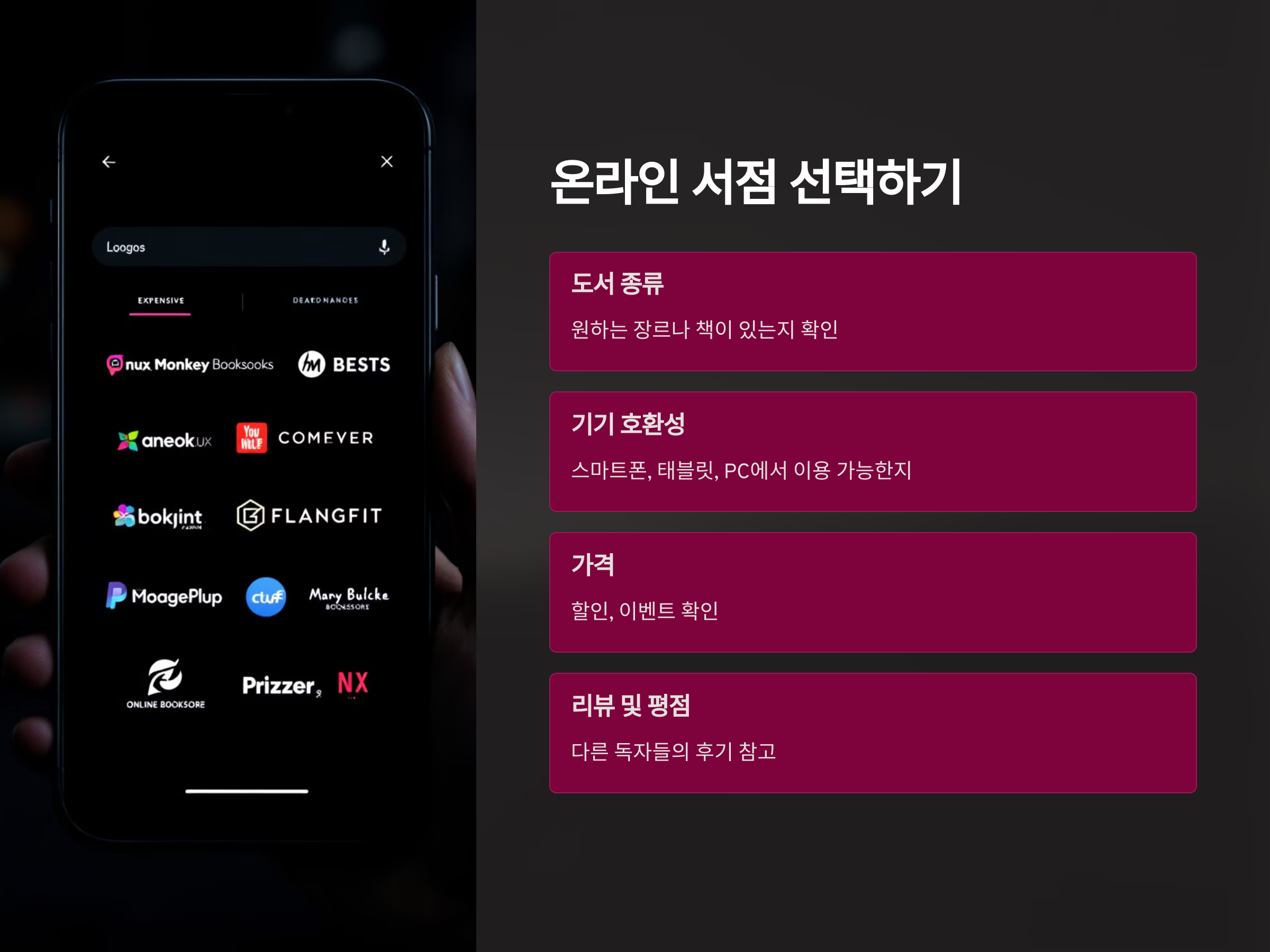서점 선택 시 고려해야 할 주요 포인트는: