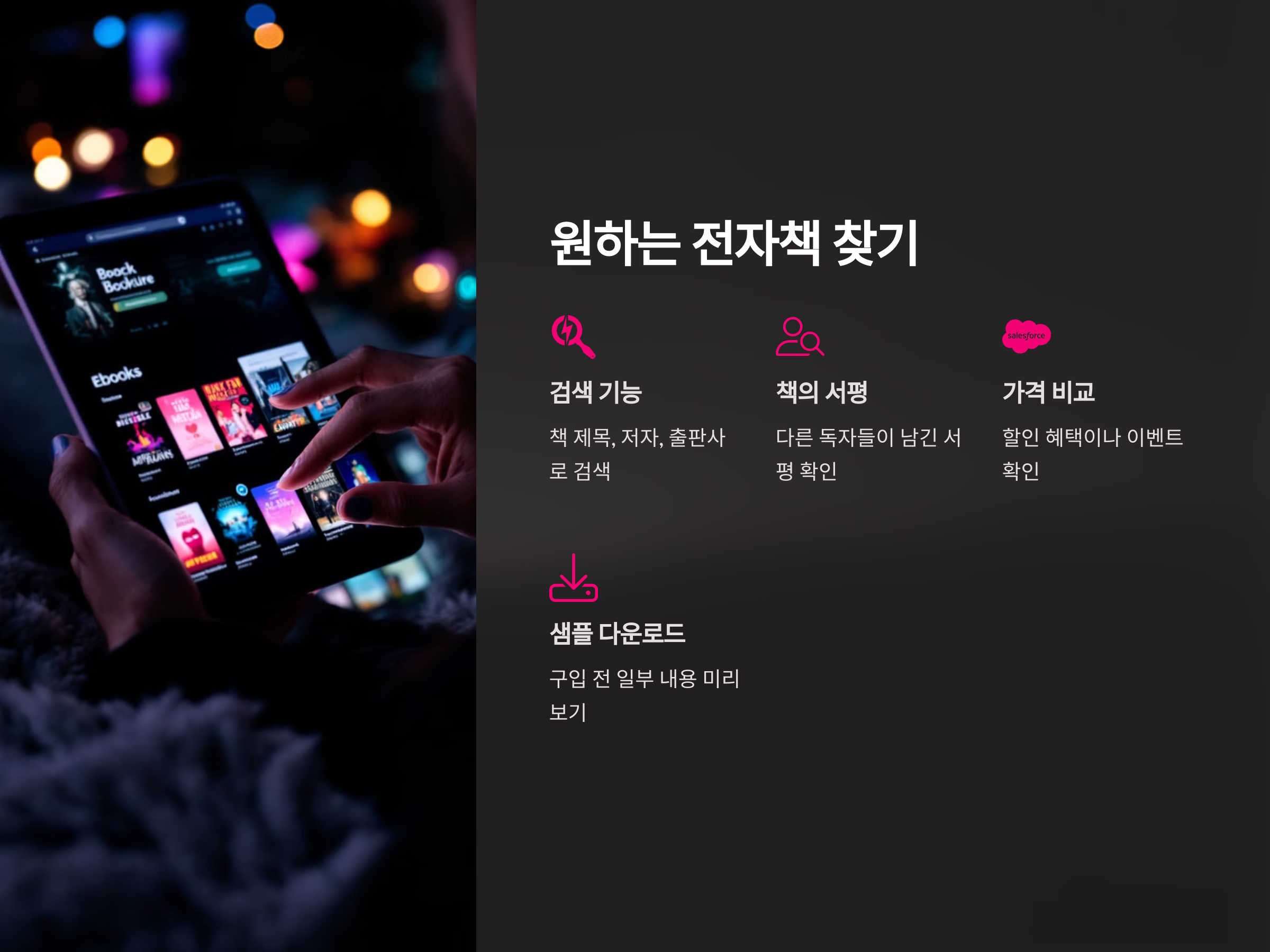 - 책의 서평: 다른 독자들이 남긴 서평을 확인하여, 해당 전자책이 자신의 취향에 맞는지 점검