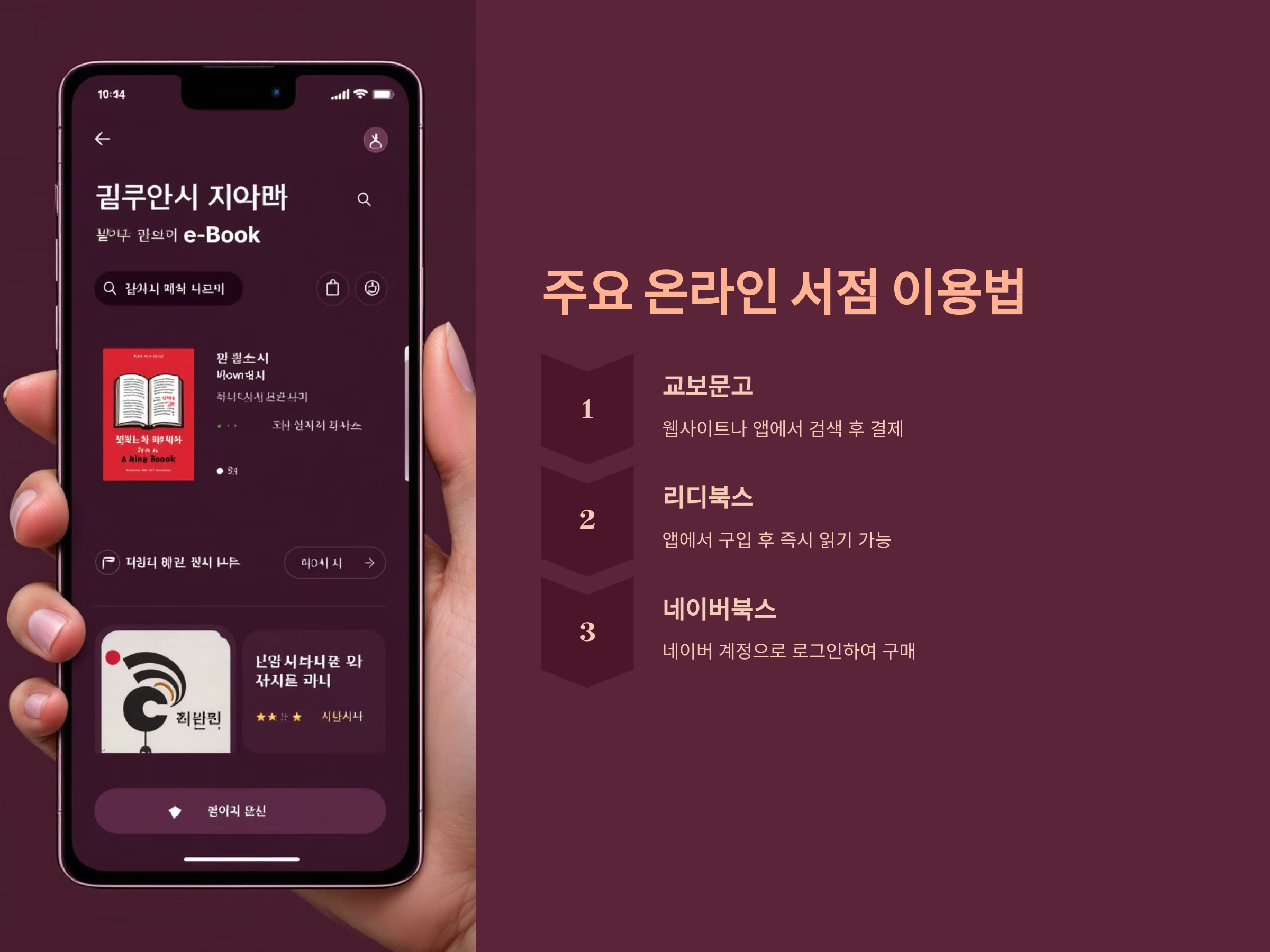 - 결제 후 전자책은 바로 다운로드 가능하거나, 지정된 앱에서 열 수 있습니다.