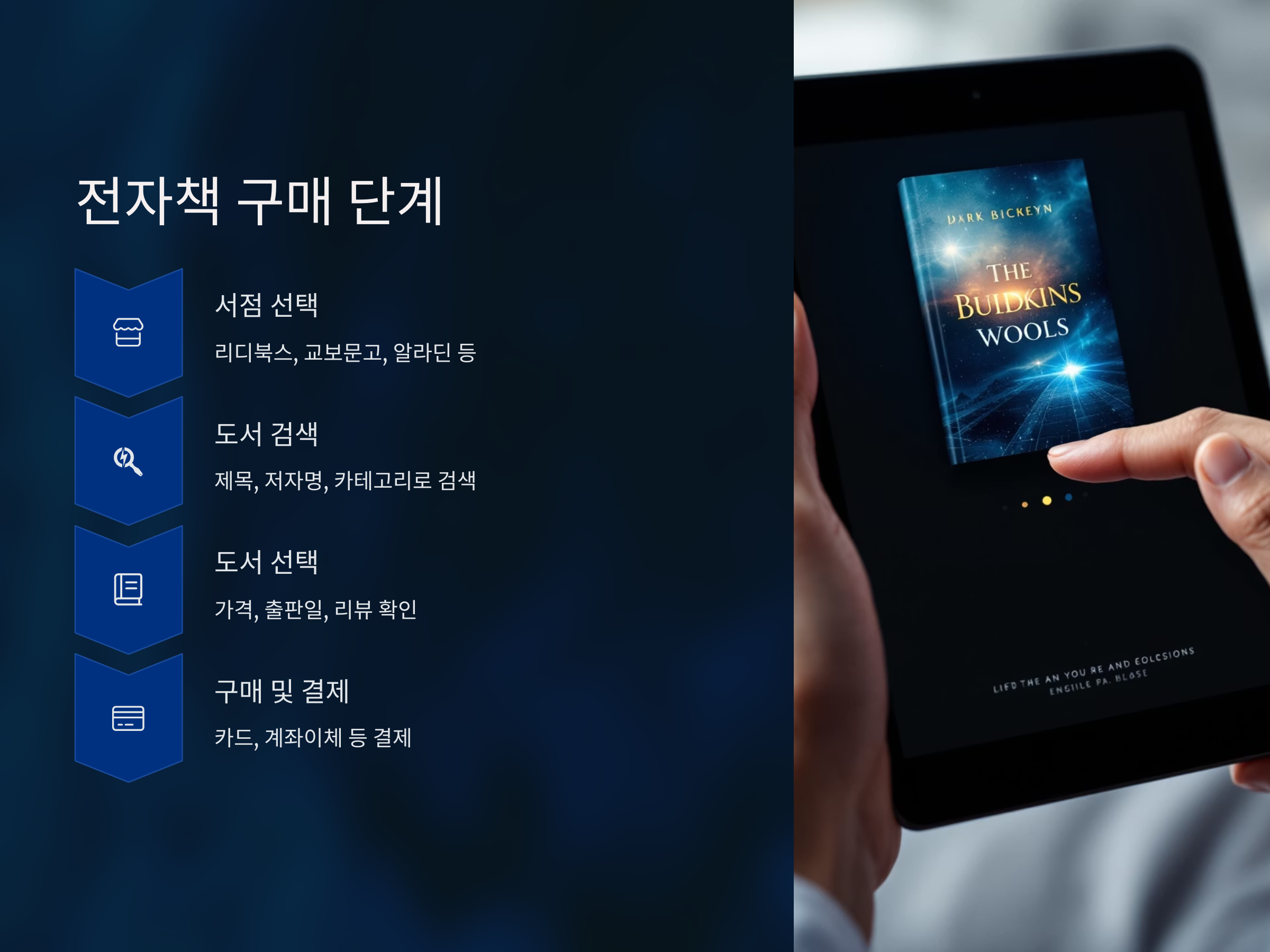 전자책을 구매하는 과정은 매우 간단합니다. 대체로 아래와 같은 단계를 따릅니다.