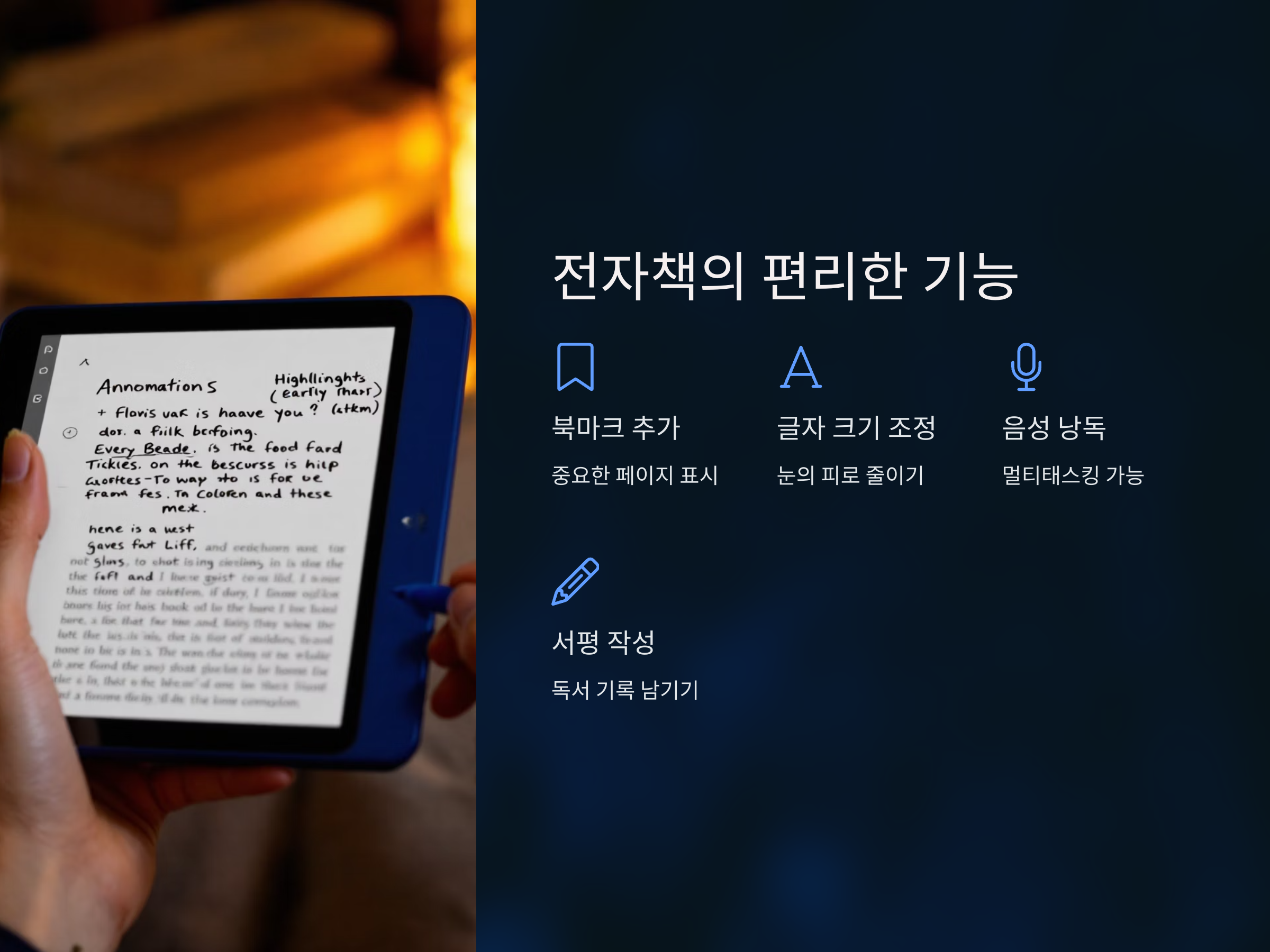전자책은 종이책과 달리 다양한 기능을 제공합니다. 예를 들어, 서평 작성, 북마크 추가, 글자 크기 조정 등이 가능하여 개인의 독서 스타일에 맞춰 편리하게 활용할 수 있습니다. 또한, 일부 서점은 음성 낭독 기능을 제공하여 운전 중이나 다른 일을 하면서도 책을 들을 수 있는 기능을 제공합니다.