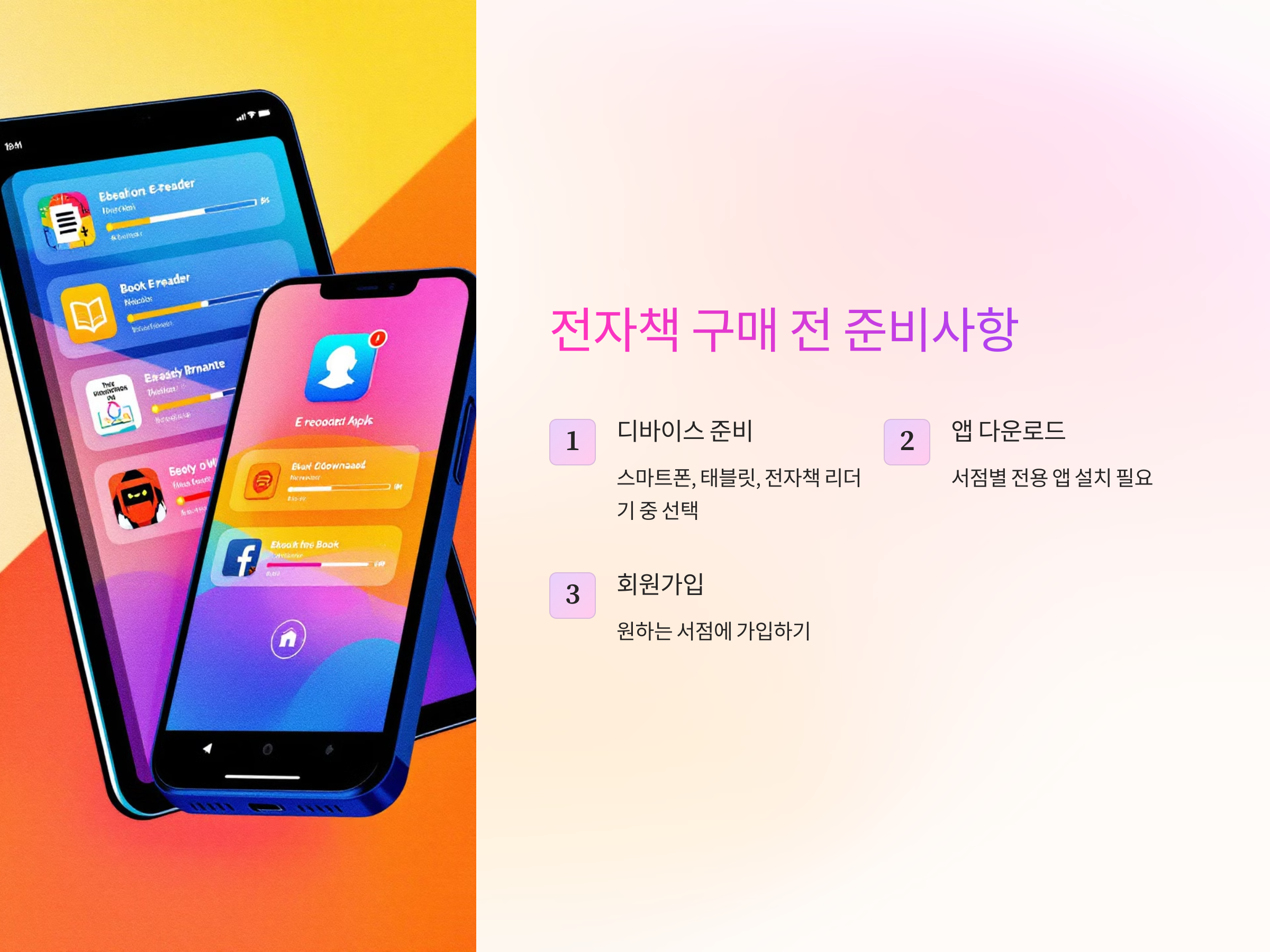 전자책을 구매하기 전에 먼저 준비해야 할 것들이 있습니다. 가장 중요한 것은 전자책을 읽을 수 있는 디바이스입니다. 스마트폰, 태블릿, 전자책 리더기 등 다양한 기기에서 전자책을 읽을 수 있는데, 자신이 보유한 기기에 맞는 전자책 앱을 다운로드하는 것이 필요합니다. 예를 들어, Amazon Kindle에서 제공하는 전자책을 읽으려면 Kindle 앱을 설치해야 하며, 교보문고나 리디북스에서 제공하는 전자책은 각 서점의 전용 앱을 다운로드해야 합니다. 각 앱은 무료로 제공되므로, 원하는 서점의 앱을 다운로드하여 회원가입을 먼저 해두는 것이 좋습니다.