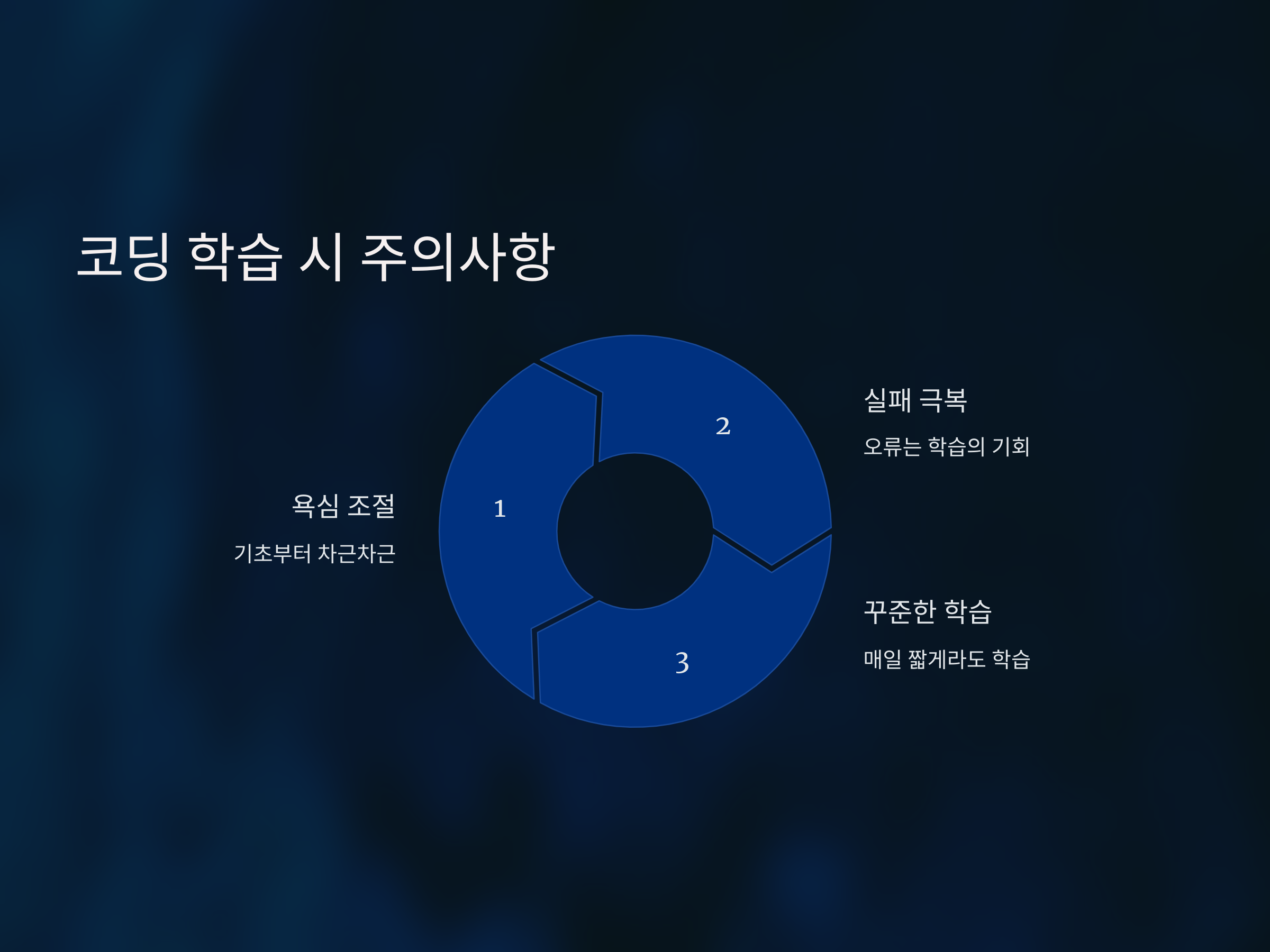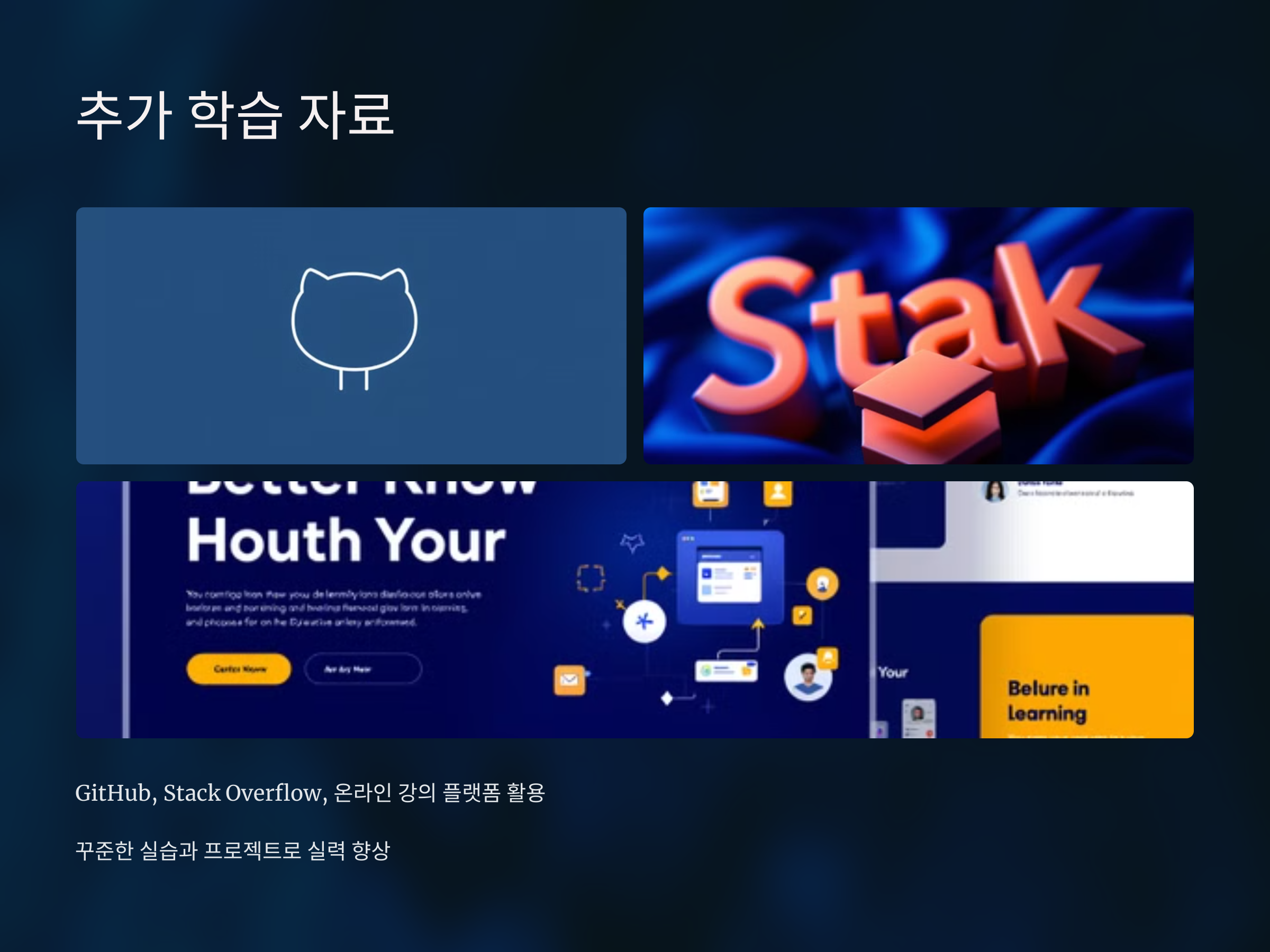 - 지나치게 욕심내지 않기: 처음부터 너무 많은 내용을 학습하려 하지 마세요. 기초를 탄탄히 하는 것이 중요합니다.