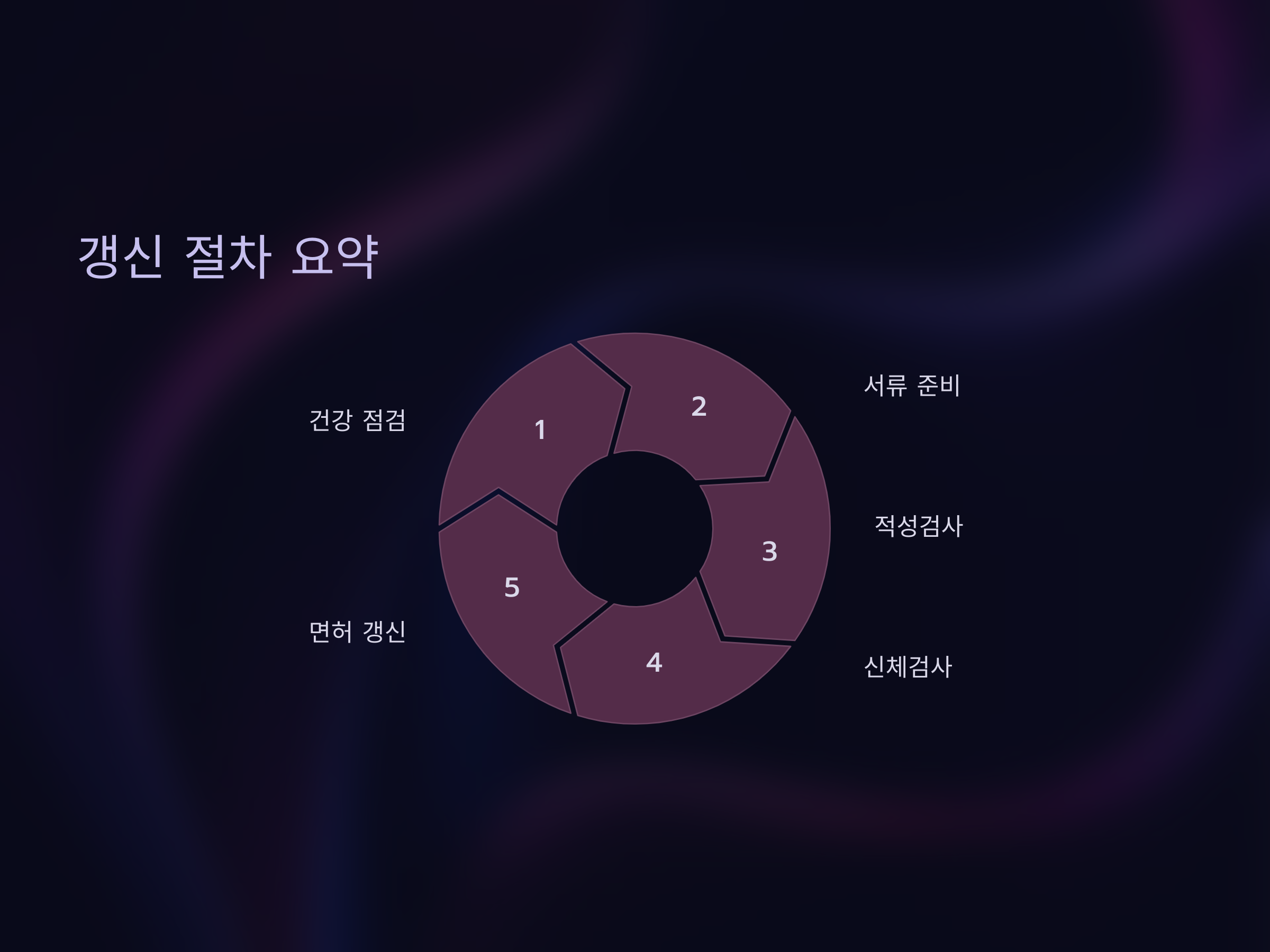 면허 갱신을 위해 필요한 서류를 미리 준비해두세요. 신분증, 신체검사 결과지, 적성검사 결과지 등 필요한 서류들을 준비해야 갱신 절차를 원활하게 진행할 수 있습니다.