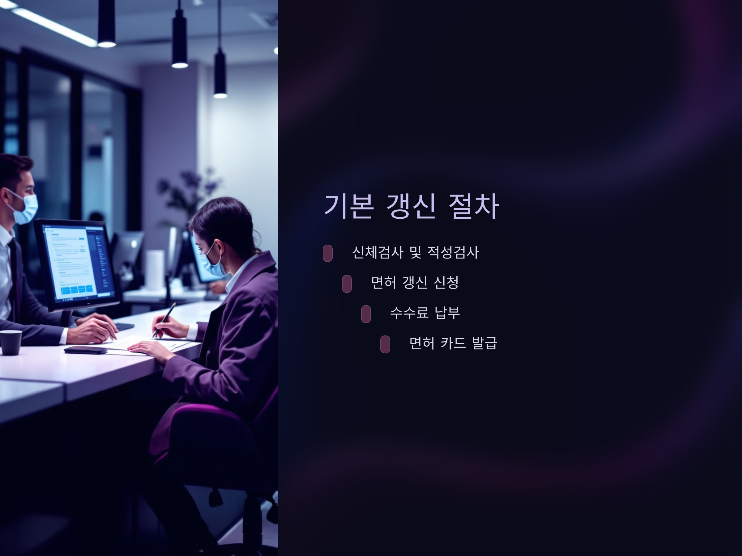 운전면허를 갱신하려면 일정한 절차를 따라야 합니다. 대부분의 사람들에게는 이 절차가 간단하게 느껴질 수 있지만, 고령자에게는 주의가 필요한 부분들이 있습니다. 일반적으로 면허 갱신 절차는 아래와 같은 단계로 진행됩니다.
