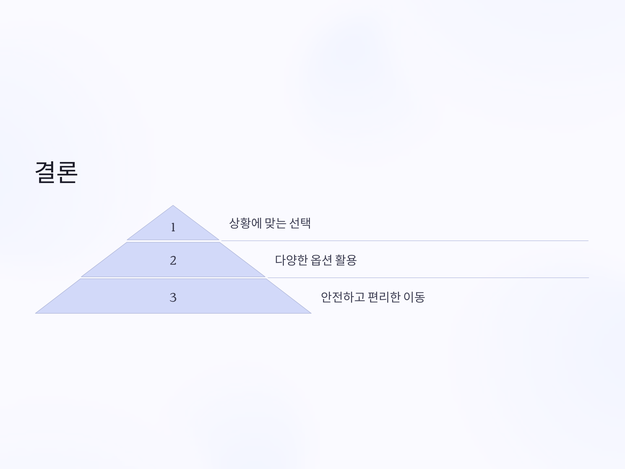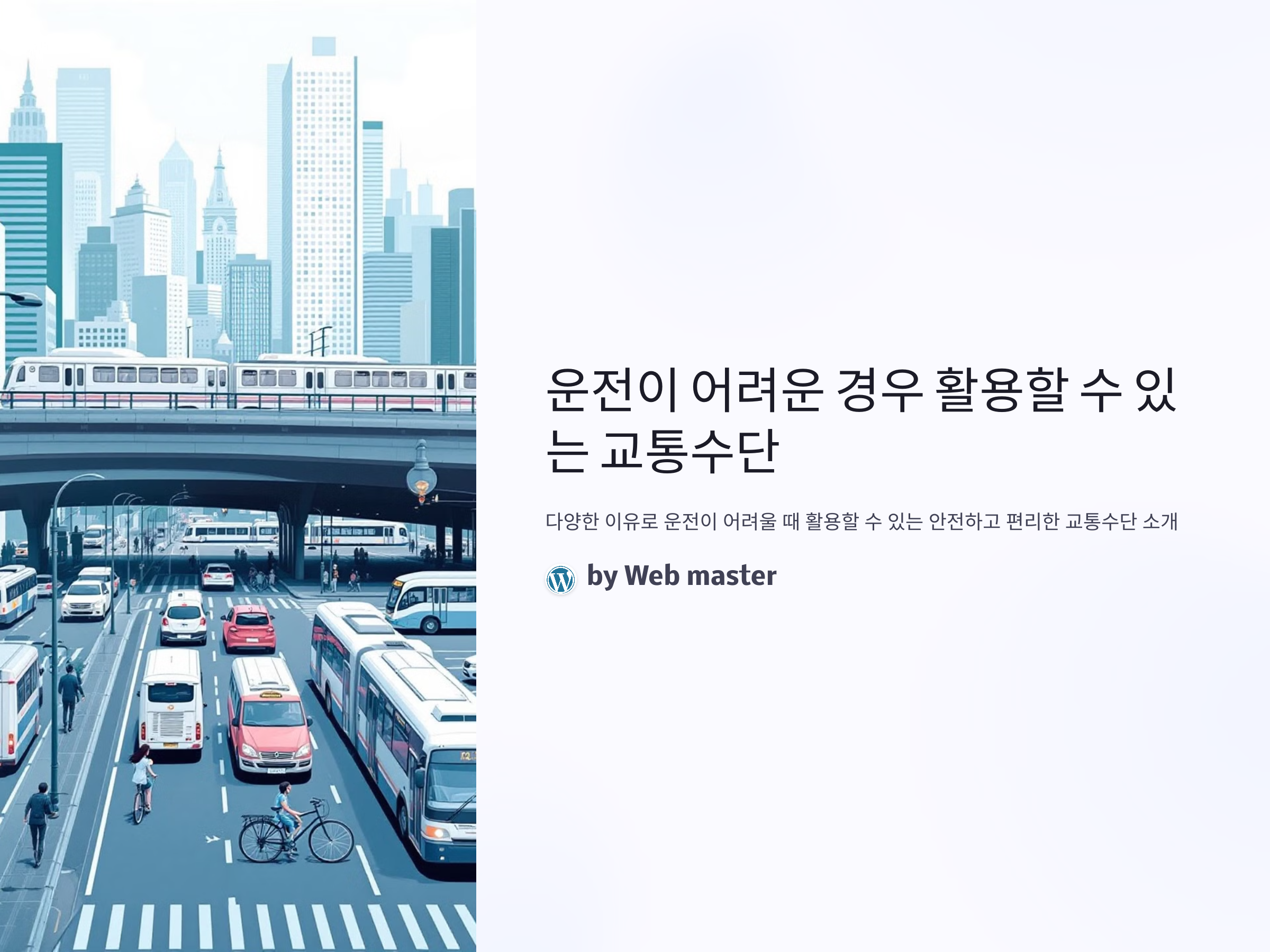운전이 어려운 경우에도 다양한 교통수단을 통해 편리하고 안전하게 이동할 수 있습니다. 본문에서 소개한 교통수단을 상황에 맞게 잘 활용하면, 스트레스 없이 목적지에 도달할 수 있습니다. 각 교통수단의 특성을 잘 이해하고, 자신의 상황에 맞게 선택하는 것이 중요합니다.