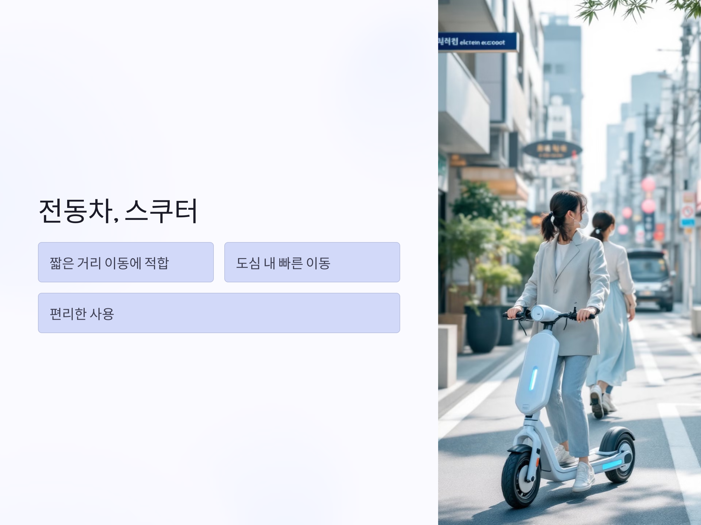 전동차나 전동 스쿠터는 최근 많은 사람들이 선택하는 교통수단입니다. 전동차는 운전이 필요 없고, 사용자가 직접 걷지 않으면서도 빠르게 이동할 수 있는 장점이 있습니다. 특히, 짧은 거리나 도심 내에서의 이동에 매우 적합합니다.