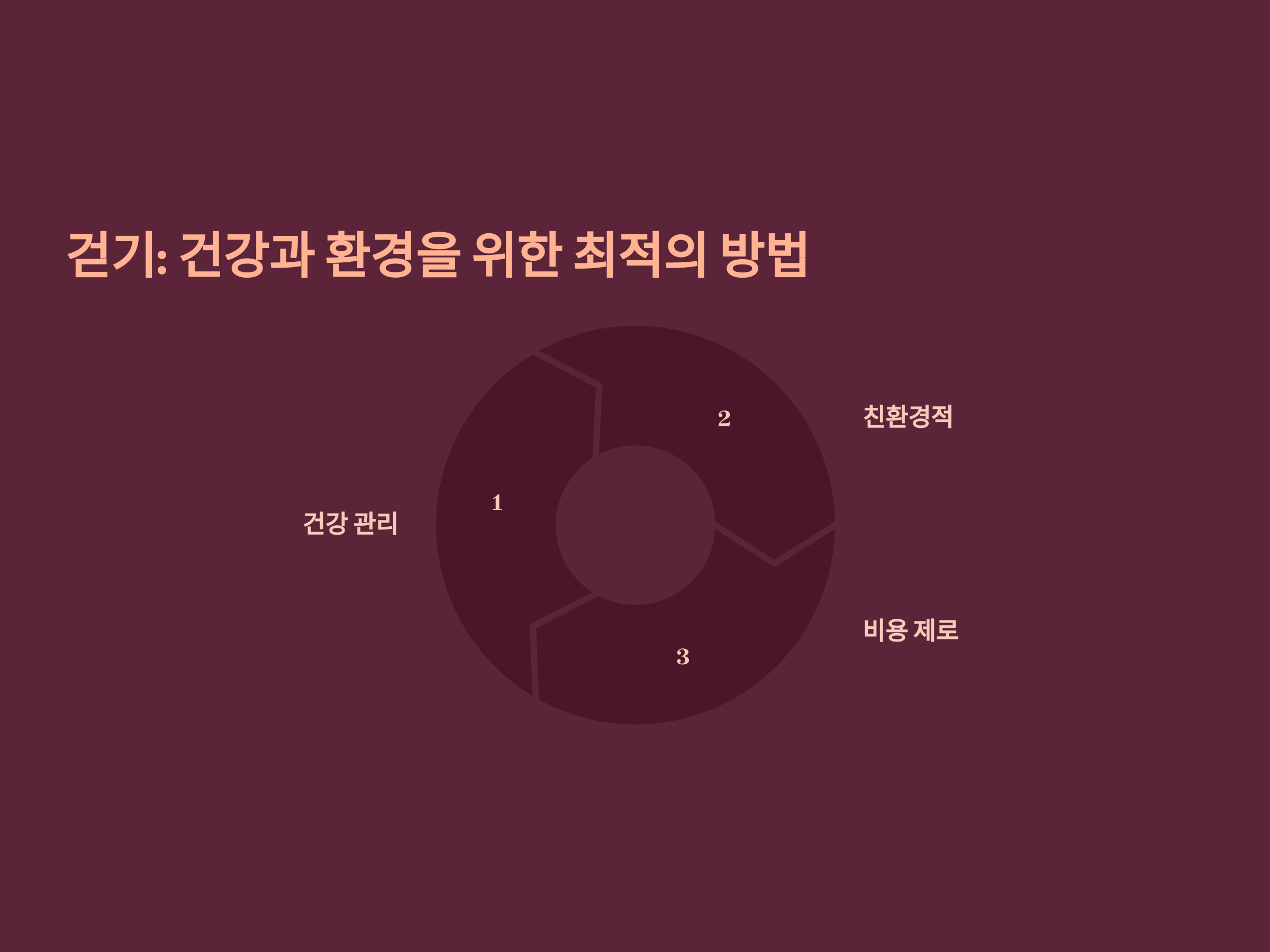 - 비용 제로: 걷기는 무료로 할 수 있는 이동 방법이기 때문에 비용 부담이 없습니다.