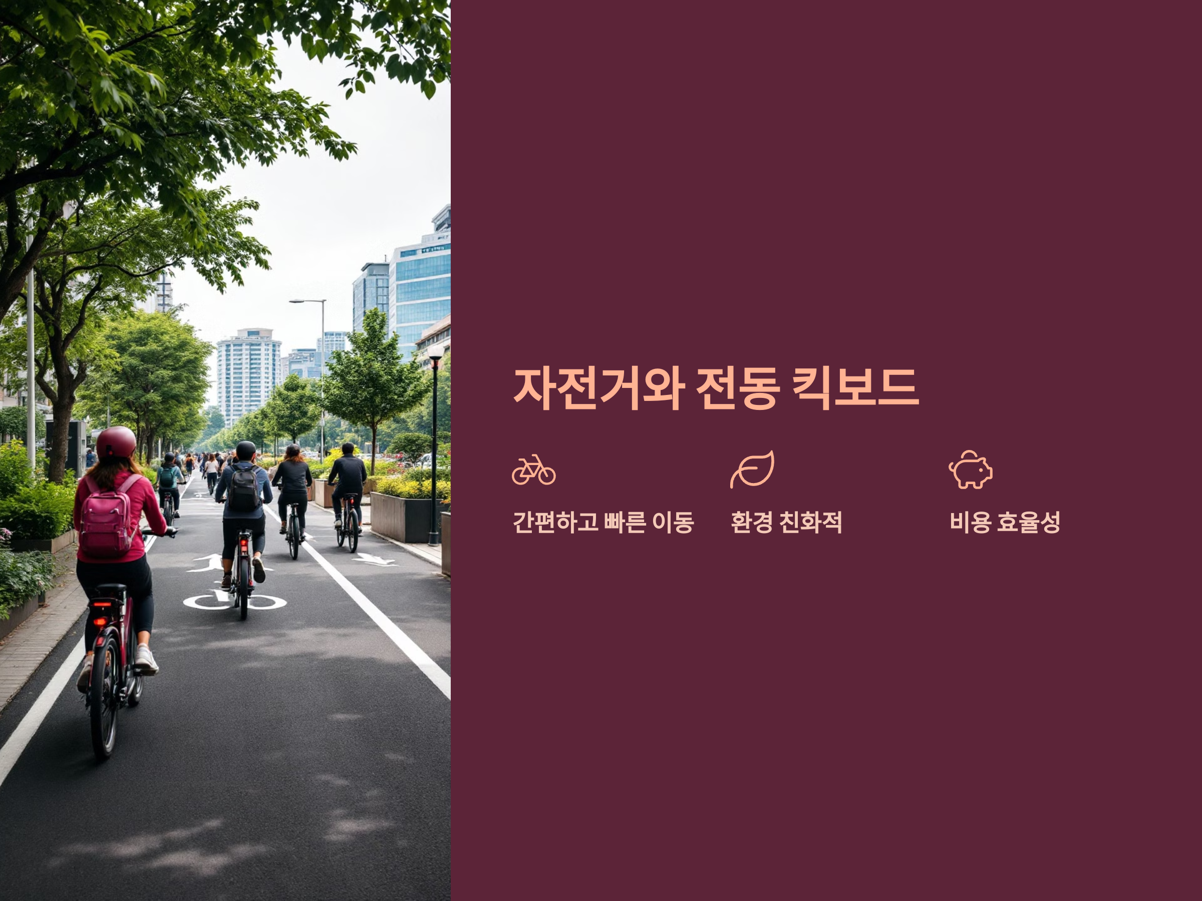 자전거와 전동 킥보드: 짧은 거리 이동에 적합