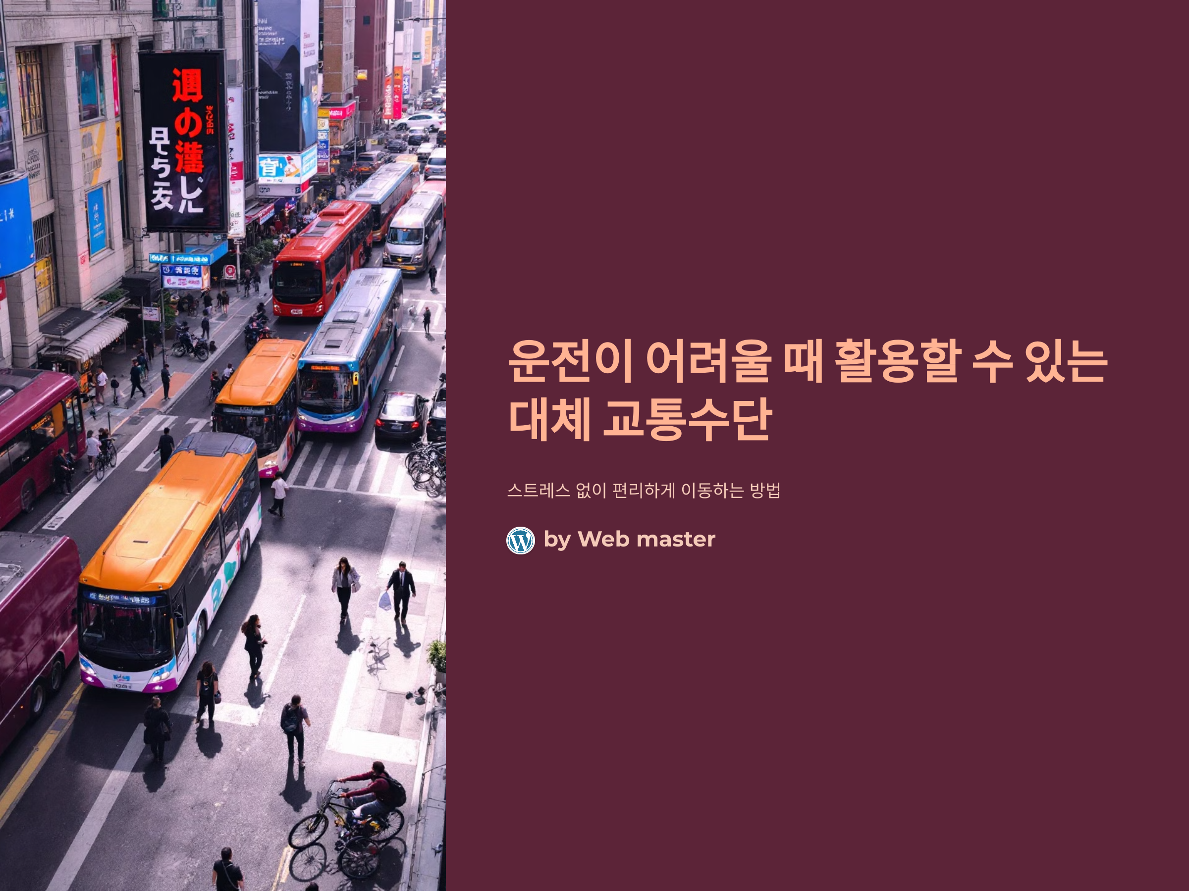 운전을 해야 하는데 상황이나 환경 때문에 힘든 경우, 대체 교통수단을 활용하면 스트레스 없이 편리하게 이동할 수 있습니다. 특히 도로가 혼잡하거나, 주차가 어렵거나, 장시간 운전에 부담을 느낄 때, 운전 대신 다른 방법을 선택하는 것이 훨씬 더 효율적일 수 있습니다. 운전이 어려운 상황에서 유용하게 활용할 수 있는 대체 교통수단을 알아보겠습니다.