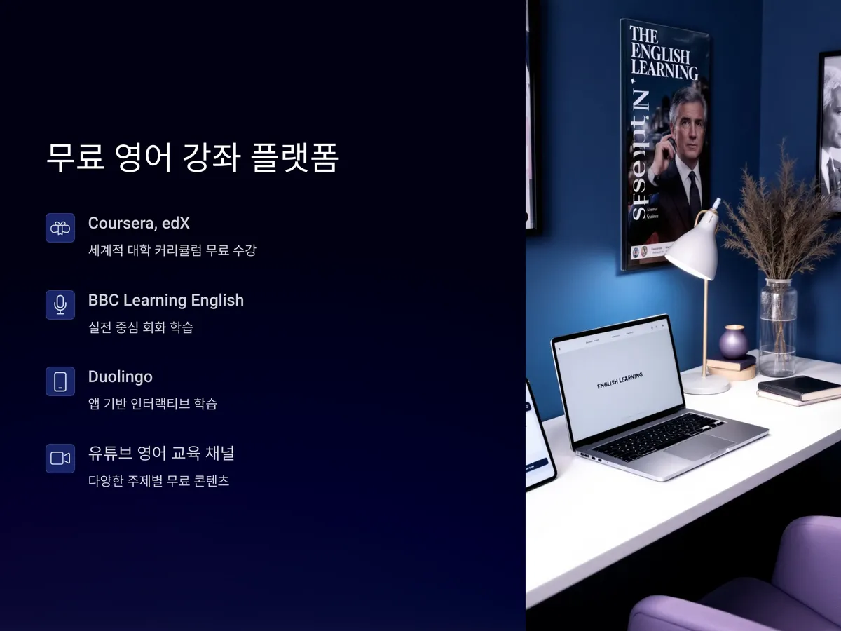 대표적인 무료 영어 강좌 플랫폼으로는 'Coursera', 'edX', 'BBC Learning English', 'Duolingo', '유튜브 영어 교육 채널', '미국 국무부의 English Language Learning 프로그램' 등이 있습니다. 이 중에서도 Coursera와 edX는 세계적인 대학들이 제공하는 실제 커리큘럼 기반 강의를 무료로 수강할 수 있으며, 인증서 발급을 원할 경우에만 소액의 비용이 부과됩니다.