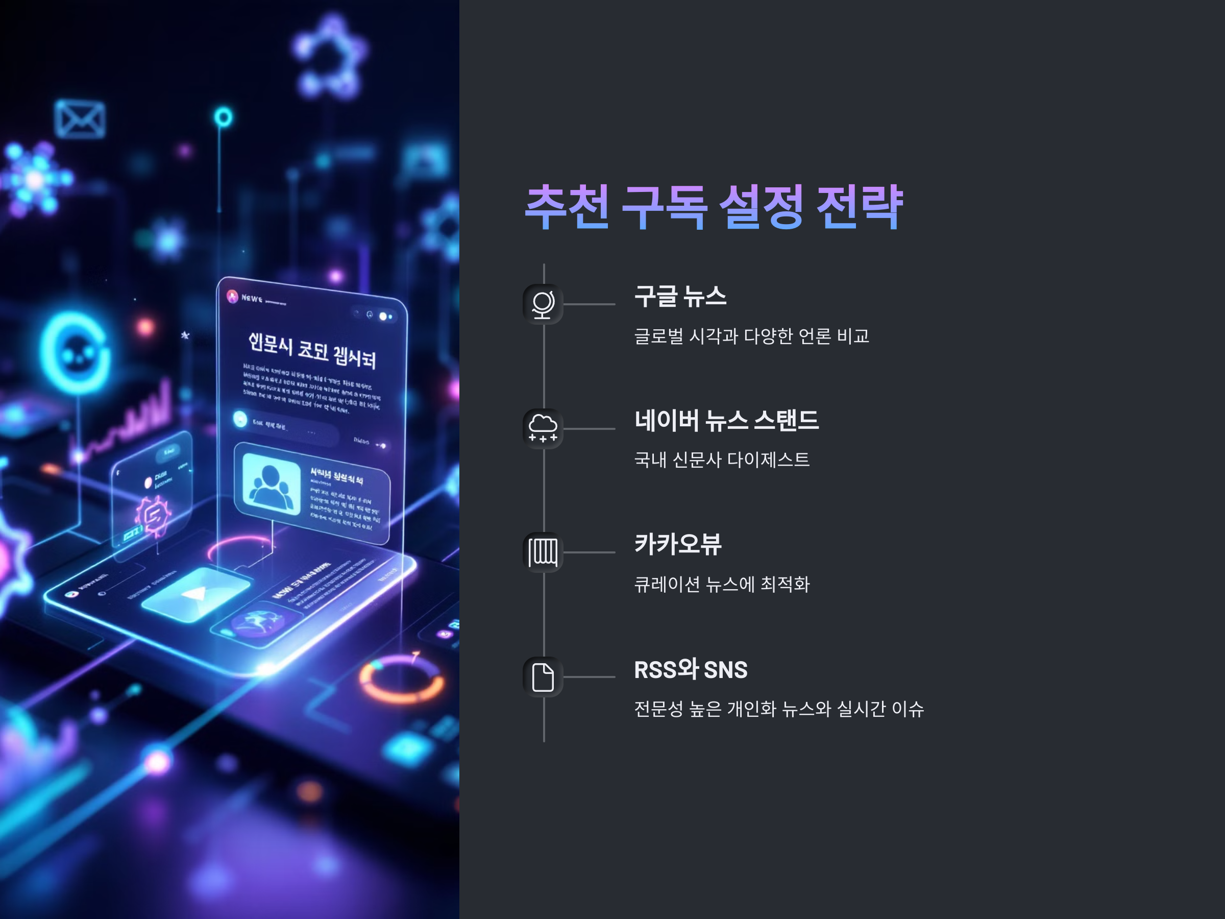 이 방식은 정보 피로도를 줄이고, 필요한 뉴스에만 집중할 수 있어 생산성과 효율성을 동시에 챙길 수 있습니다.