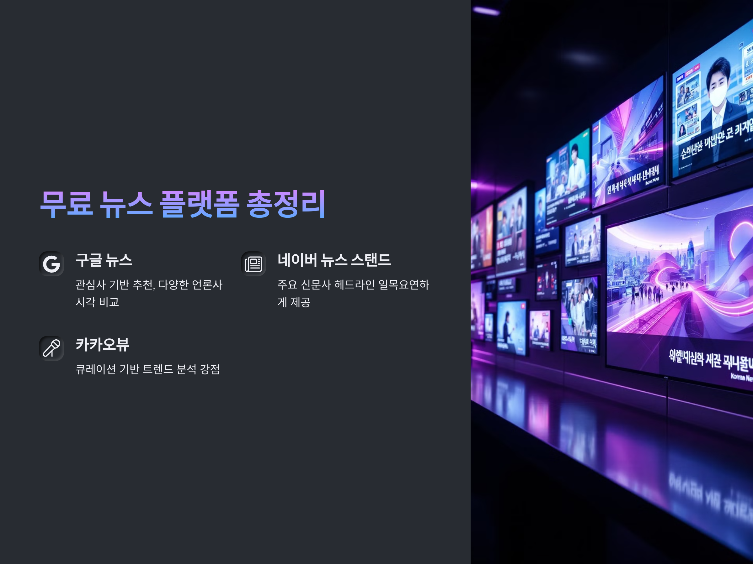 특히 구글 뉴스는 사용자의 검색 이력과 관심 주제를 기반으로 추천기사를 제공하며, 여러 언론사의 시각을 비교할 수 있어 신뢰도 높은 플랫폼입니다. 네이버 뉴스 스탠드는 전국 주요 신문사들의 헤드라인을 일목요연하게 모아 보여주며, 카카오뷰는 큐레이션 기반으로 트렌드 분석이 강점입니다.