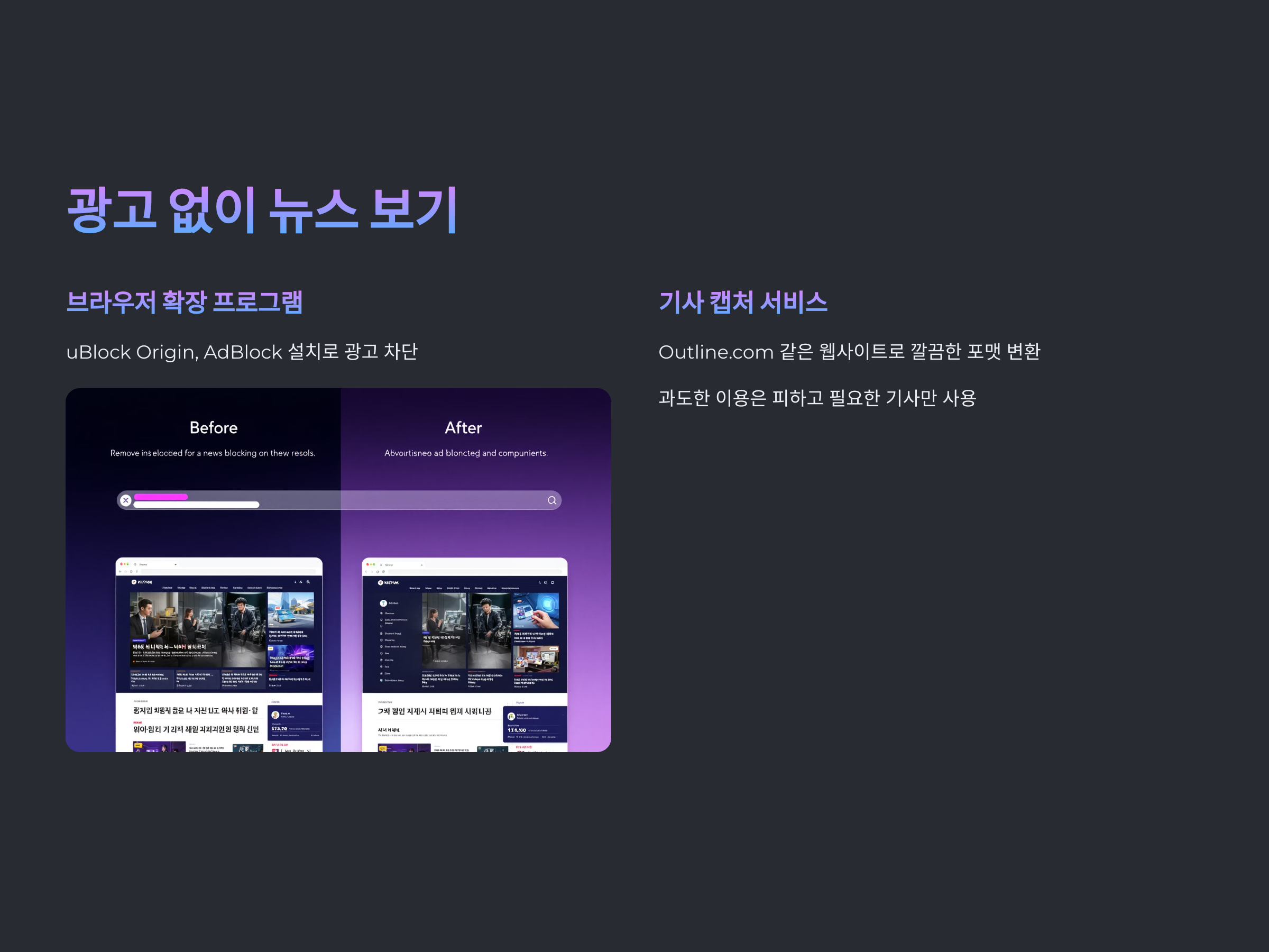 뉴스는 공짜로 봐도, 광고는 피하고 싶을 때가 많죠. 방법은 두 가지입니다.