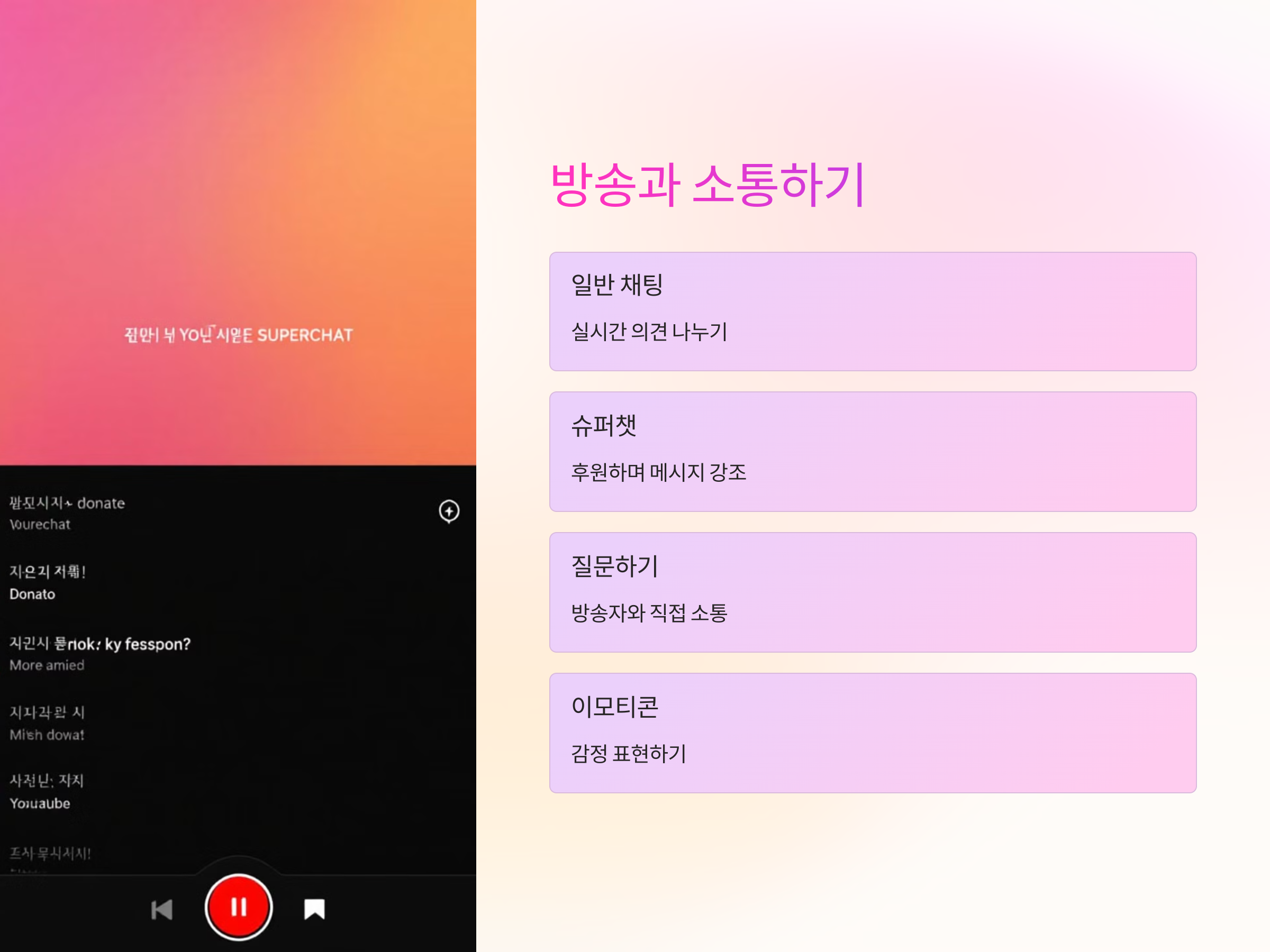 라이브 방송에서 실시간으로 채팅을 통해 방송 진행자와 소통할 수 있는 것 외에도, 다양한 기능이 존재합니다. 예를 들어, 슈퍼챗(Super Chat)을 통해 방송에 후원하며 메시지를 강조할 수 있습니다. 슈퍼챗은 방송자에게 직접 후원하며 메시지를 보내는 방법으로, 일부 방송에서는 후원자가 방송 진행자의 주목을 받을 수 있습니다.